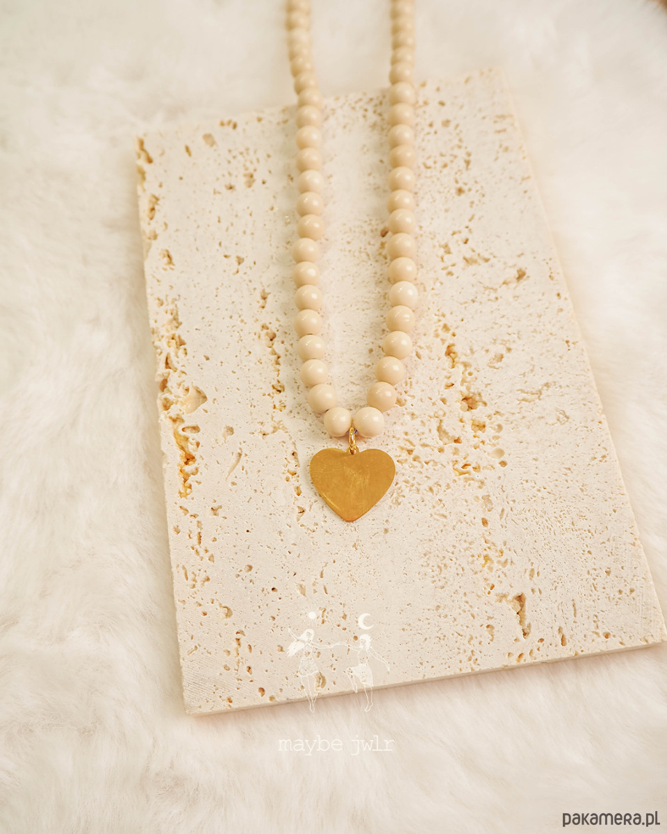 Piękny naszyjnik z białego kamienia rzecznego, o długości 41 cm z możliwością przedłużenia o dodatkowe 5 cm.
