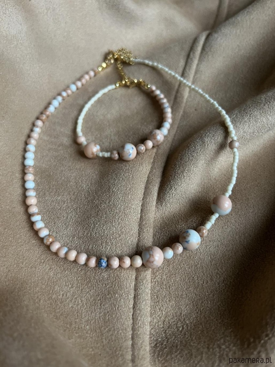 Subtelny, jasny naszyjnik choker o delikatnym, naturalnym charakterze. Kremowe koraliki Toho tworzą lekką, harmonijną bazę, a akcent z naturalnego jaspisu dodaje całości elegancji i unikatowego wyrazu. To biżuteria, która pięknie podkreśla codzienne stylizacje.