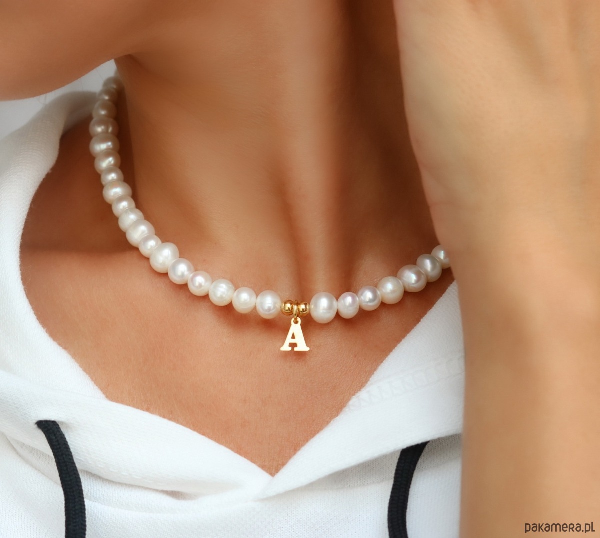 Choker z naturalnych pereł z literką- srebro 925 pozłacane LITERKA DO WYBORU