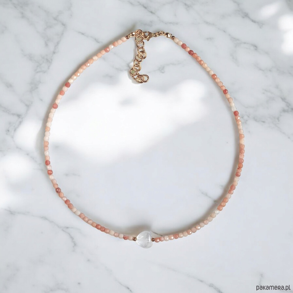 Choker z serduszkiem: awenturyn łososiowy i kryształ górski