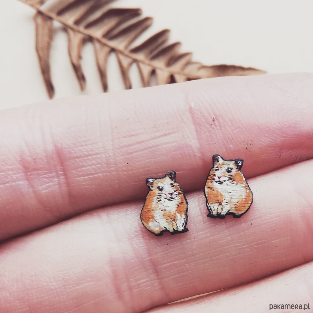 Lekkie kolczyki-sztyfty wykonane na podstawie autorskiego rysunku. Zrobione z drewna, ręcznie malowane i zabezpieczone lakierem. Każda para będzie niepowtarzalna. Wielkość ok 1cm. Sztyfty nie uczulą, bo są z silikonu!