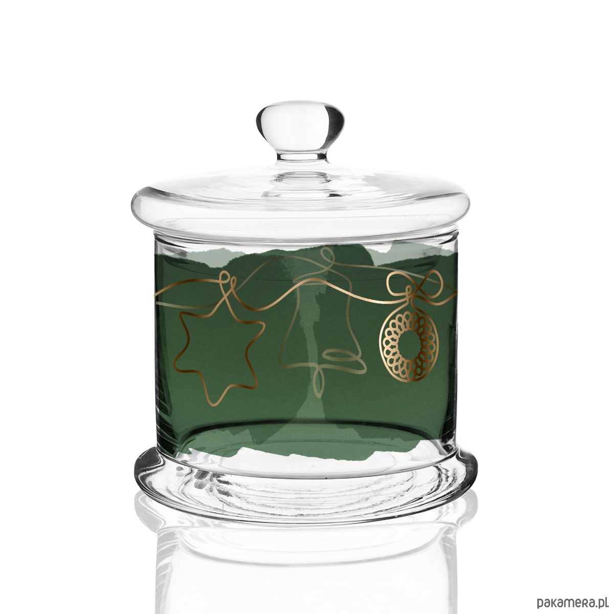 pojemnik szklany szklana o zielono-złotym wzorze, zdobienie 24-karatowym złotem