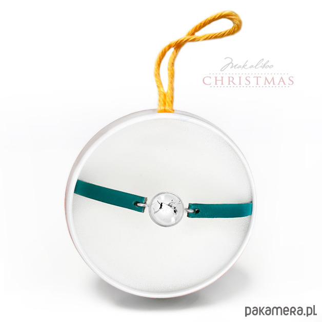 Delikatna, kobieca wykonana ze stali nierdzewnej oraz skórzanego rzemyka o szerokości 5 mm. Grafika została ukryta pod 10 mm wypukłym szkiełkiem.