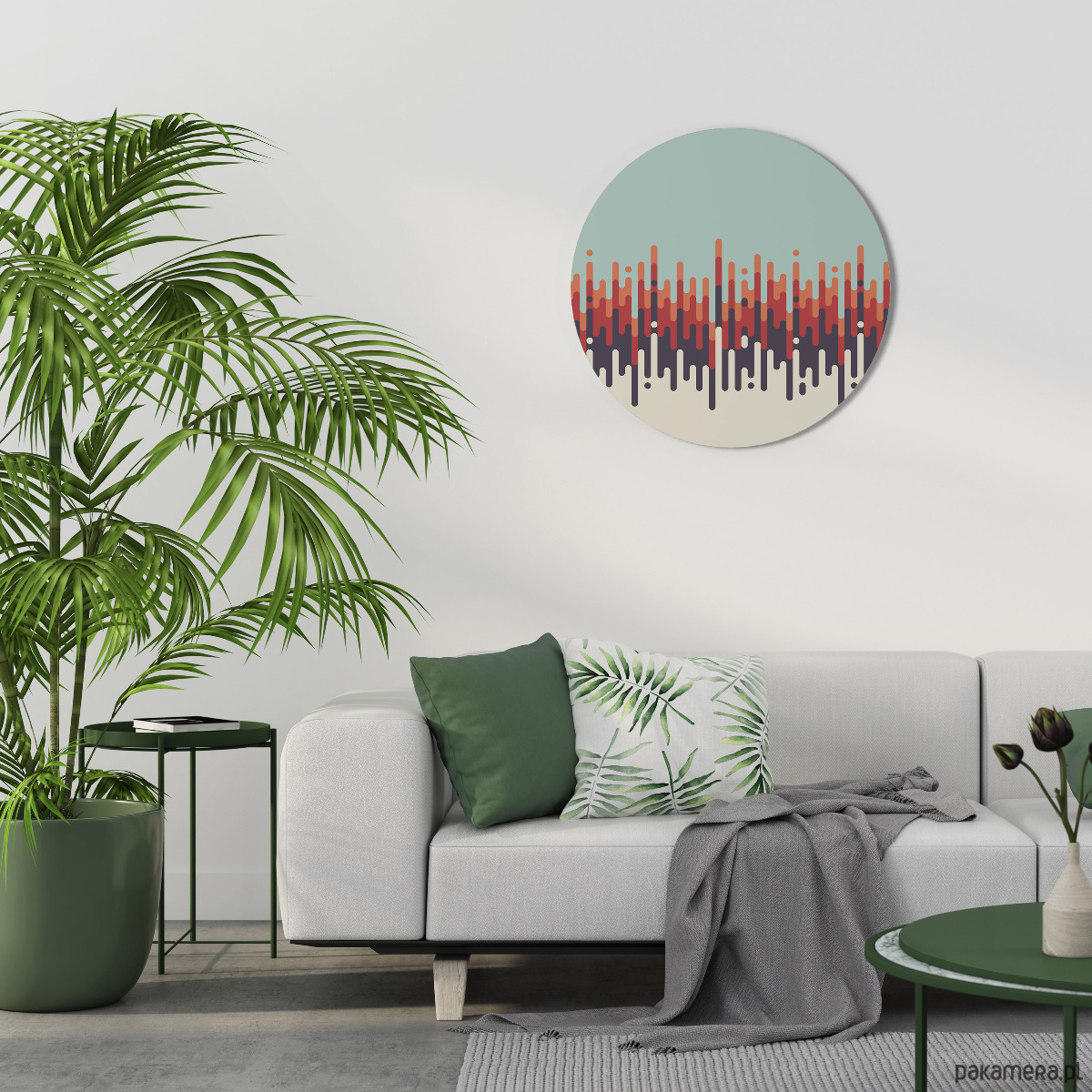 Wprowadź do swojego wnętrza wyjątkowy charakter dzięki eleganckiemu okrągłemu obrazowi. To nowoczesna dekoracja ścienna, która idealnie komponuje się z różnymi stylami aranżacji – od minimalistycznych, przez klasyczne, aż po boho.