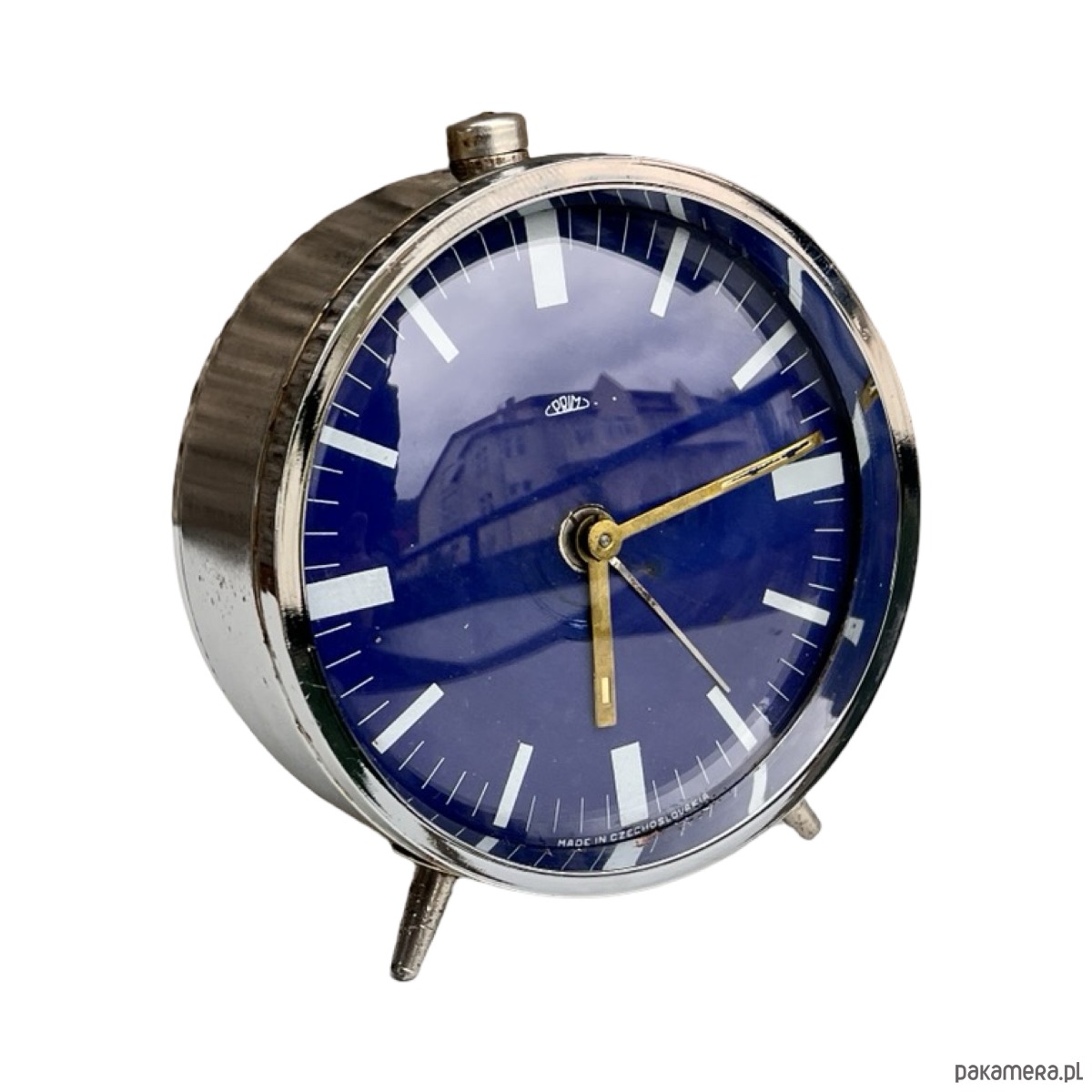 Chromowany budzik PRIM, mechaniczny zegar vintage, Czechosłowacja, lata 70.