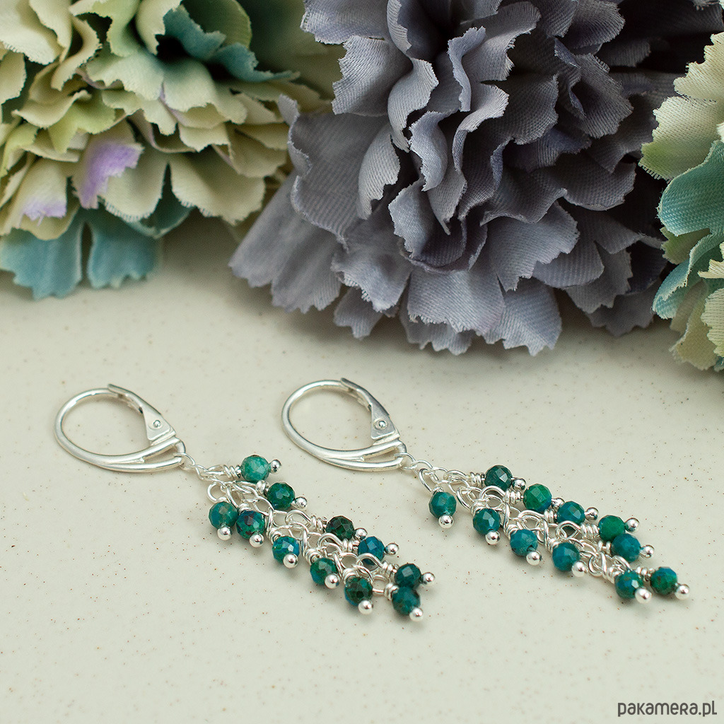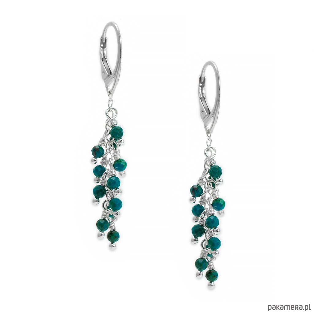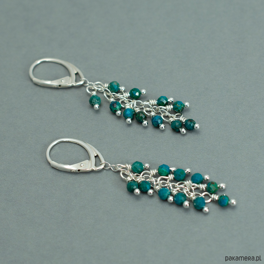 Chryzokola i srebro 925 - delikatne długie kolczyki gronka