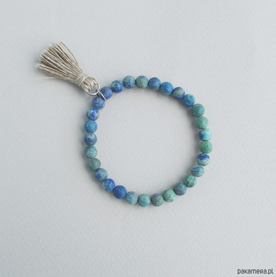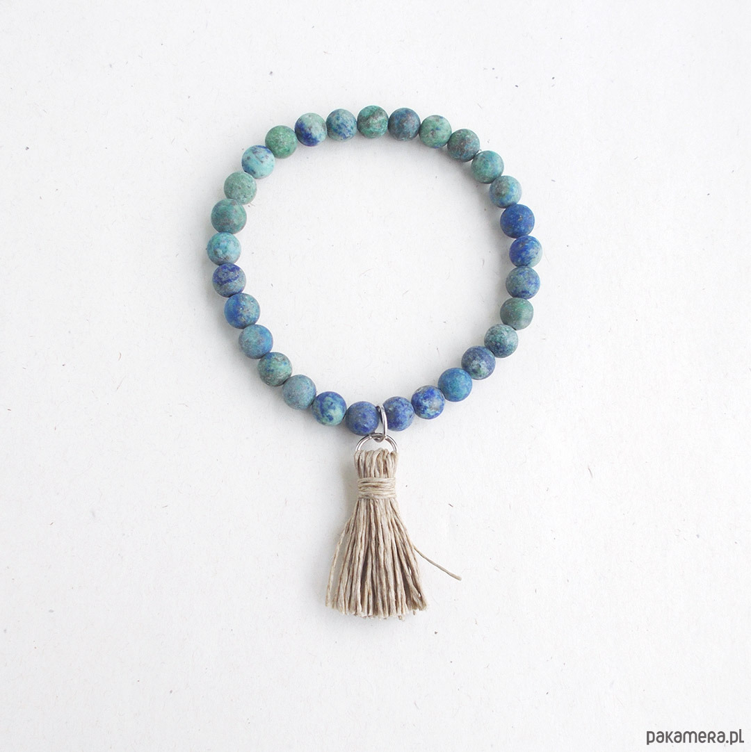 Chryzokola matowa bransoletka z frędzlem