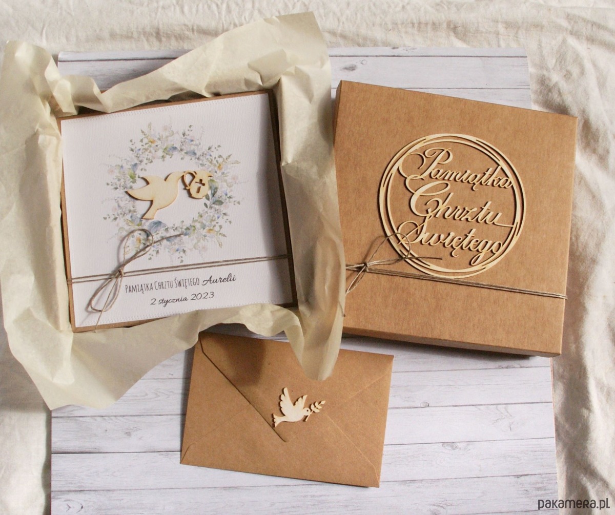 Chrzest - kartka, personalizacja, pudełko, koperta
