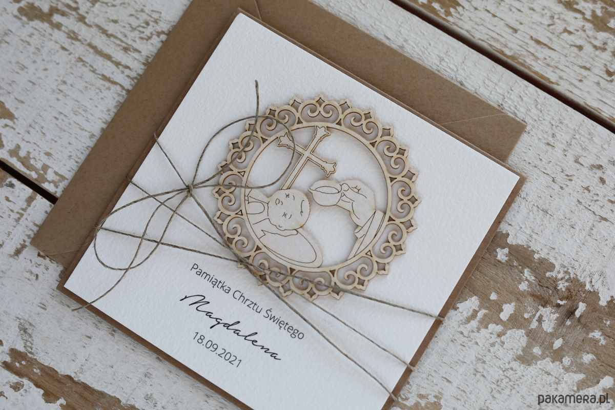 Przedmiotem oferty jest rustykalna kartka na chrzest z kopertą.