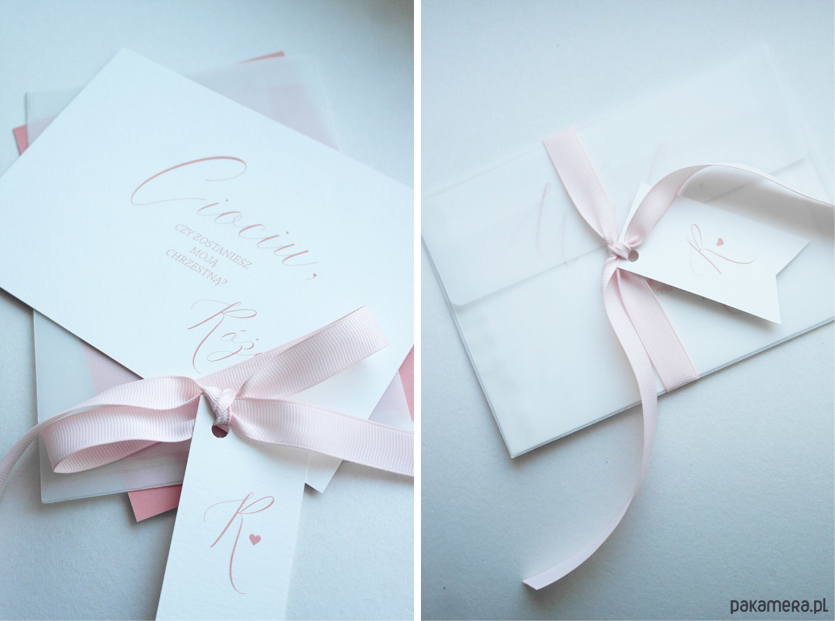 Elegancka i przyjemna wizualnie forma prośby o towarzyszenie w drodze życia nowo narodzonemu człowiekowi.