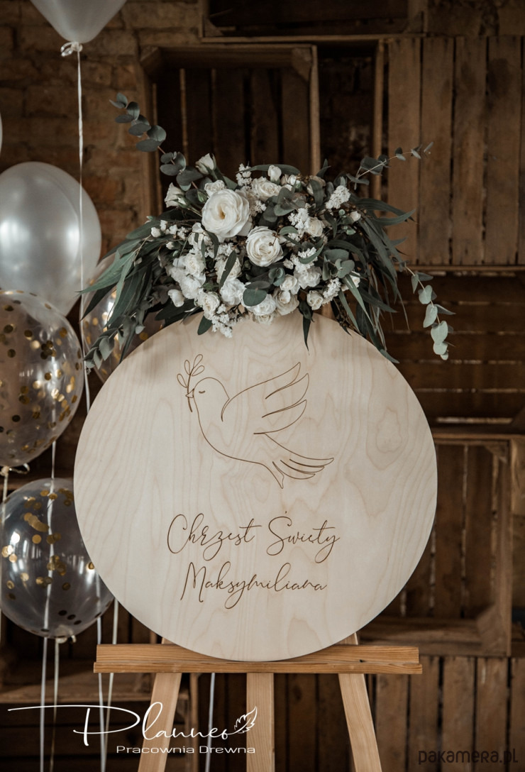 Wyjątkowa tablica powitalna z gołębiem wykonana z wysokiej jakości sklejki z drzew liściastych o grubości 6 mm dla średnicy 59 cm.