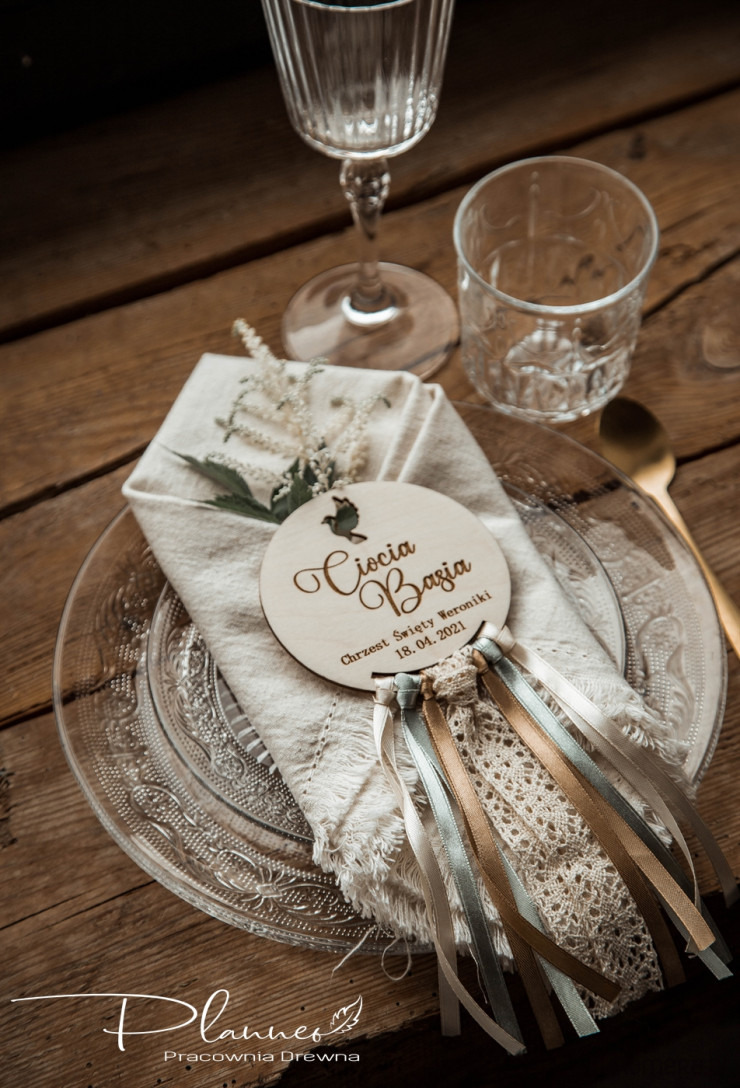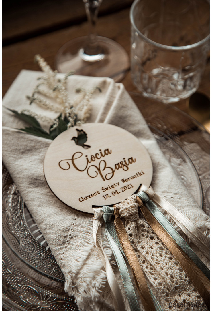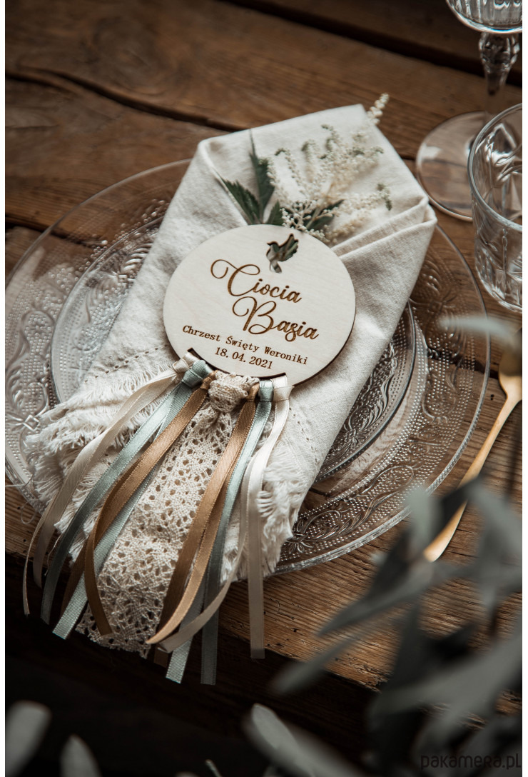 Kolorystyka wstążek na zdjęciu to koronka beżowa, zieleń, beż oraz brąz.