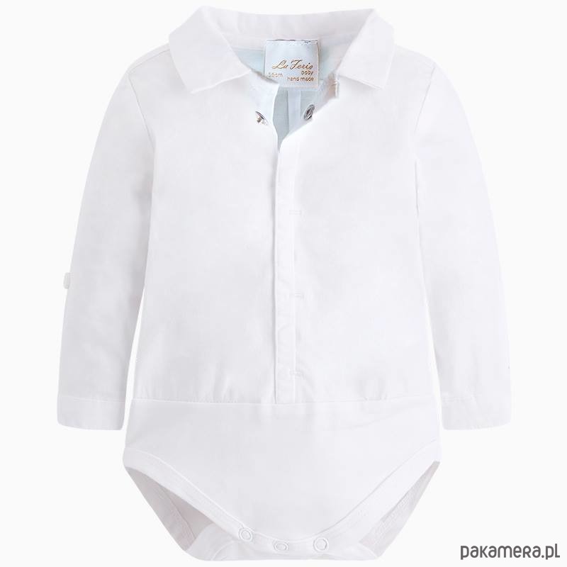 Elegancka chłopięca koszula body z długim rękawem na specjalne okazje. Koszula wykonana z bawełny z dodatkiem elastanu. kolor biały.