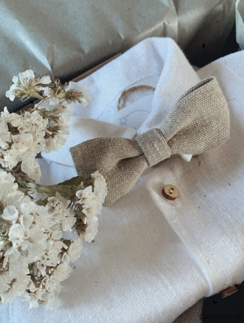 Piękna klasyczna lniana muszka, która wspaniałe dopełni nasz lniany komplet dla chłopca ale nada elegancji też innym zestawieniom.