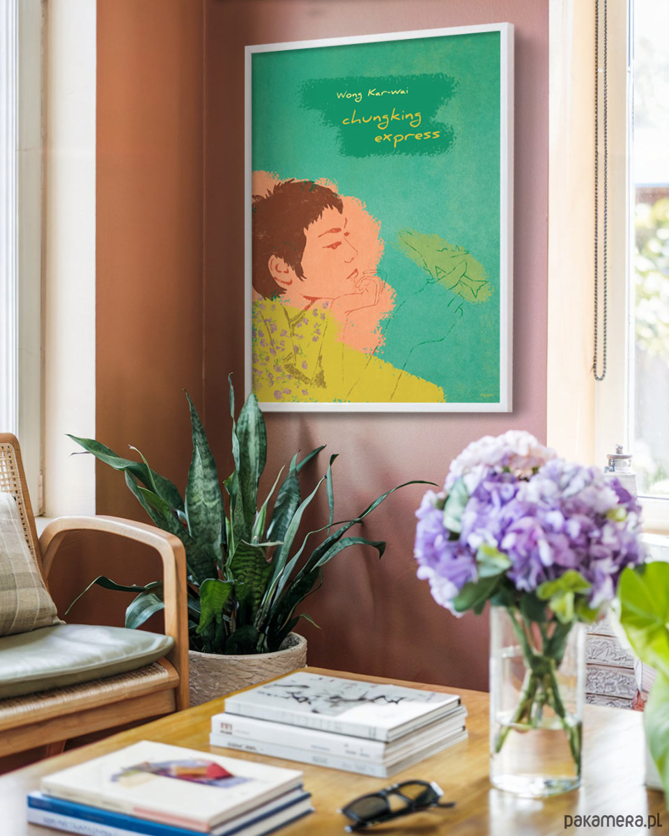 Plakat inspirowany filmem "Chungking Expressw" reżyserii Wong Kar-Waia. Neonowy Hong Kong pełen nieszablonowych postaci, genialne zdjęcia i narracja, która trwale wpłynęła na pojmowanie artystycznego kina lat 90-tych. Plakat w szkicowej formie przedstawia jedną z głównych bohaterek, w którą wcieliła się urocza Faye Wong. Grafika utrzymana w ciepłych, intensywnych barwach stanowić będzie piękny, dekoracyjny akcent na ścianach mieszkania.