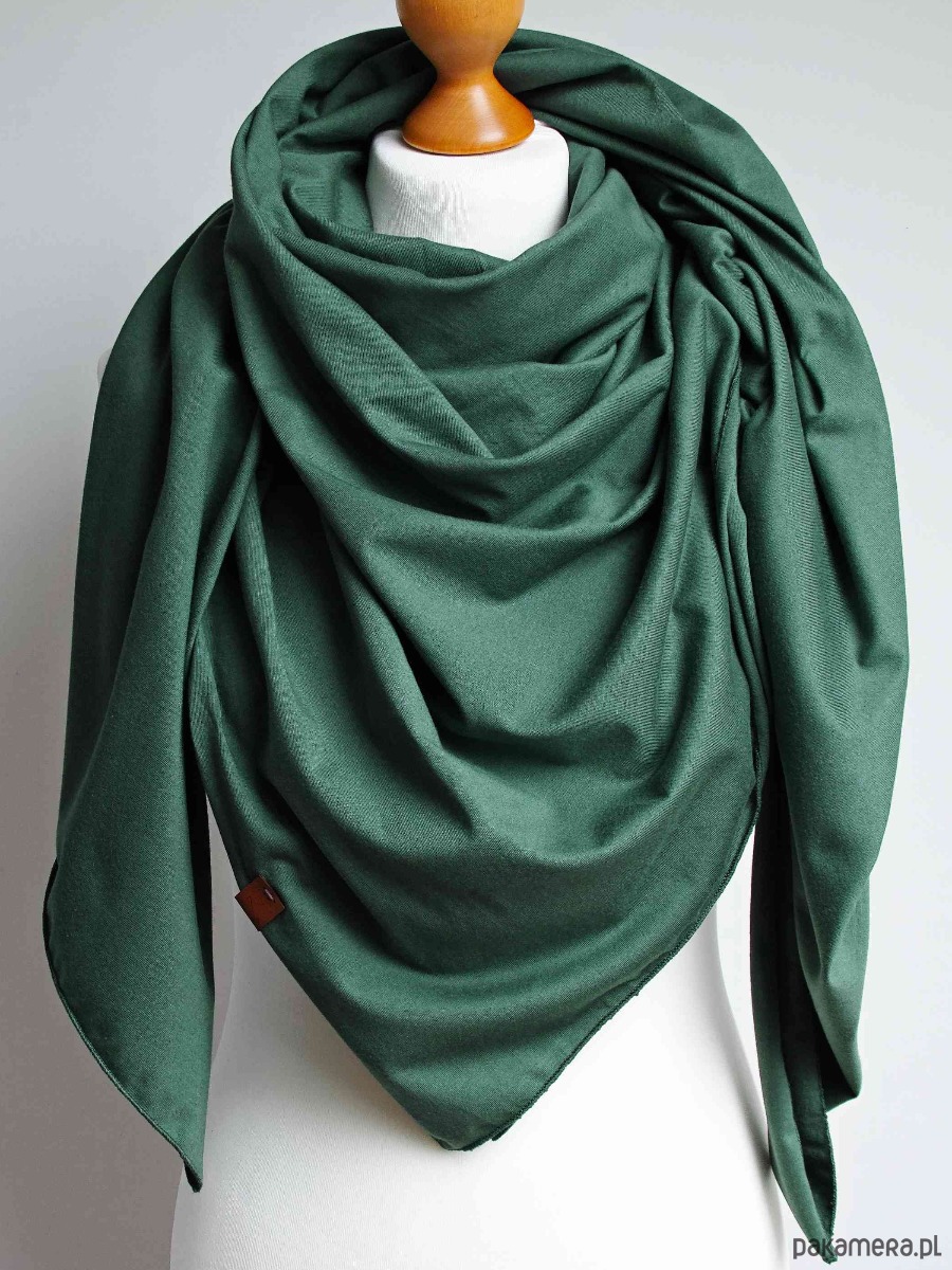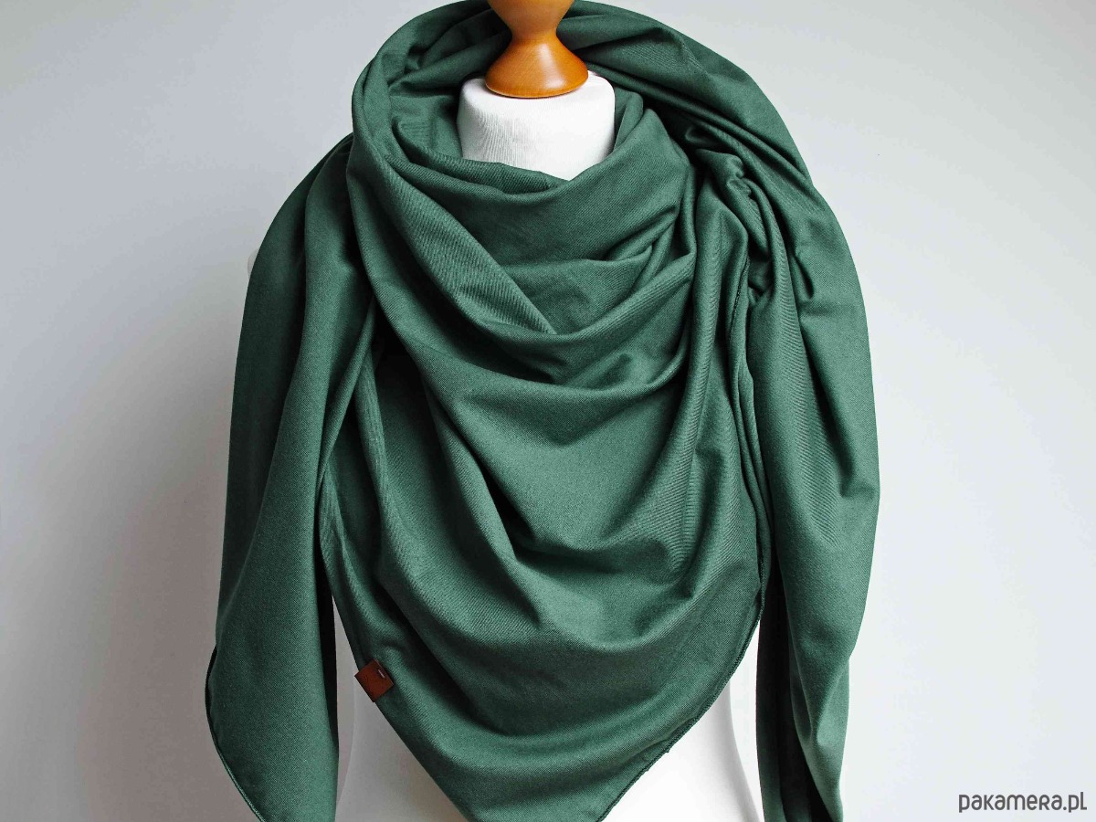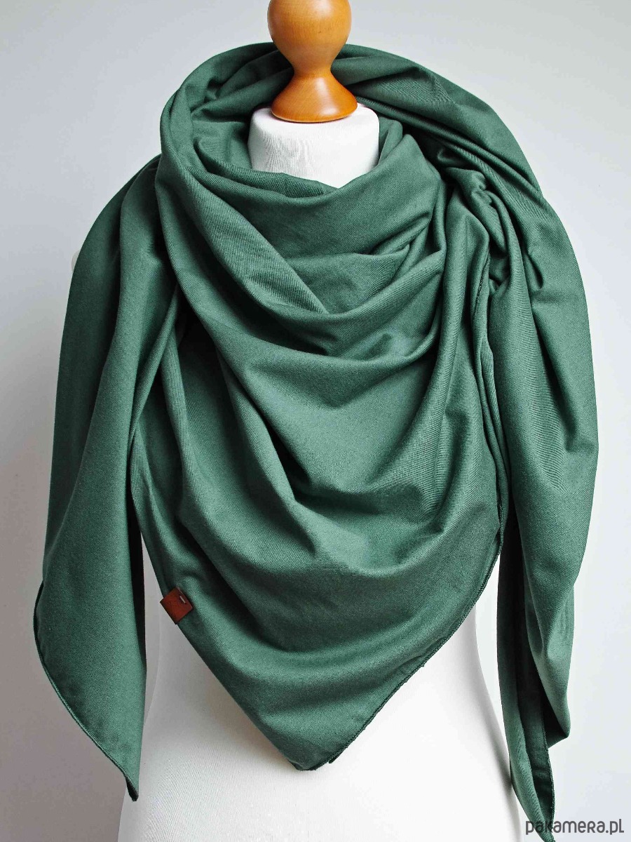 Przyjemna w dotyku chusta damska w kolorze zielonym. Chusta została uszyta z tkaniny bawełnianej, który jest bardzo przyjemny dla skóry.