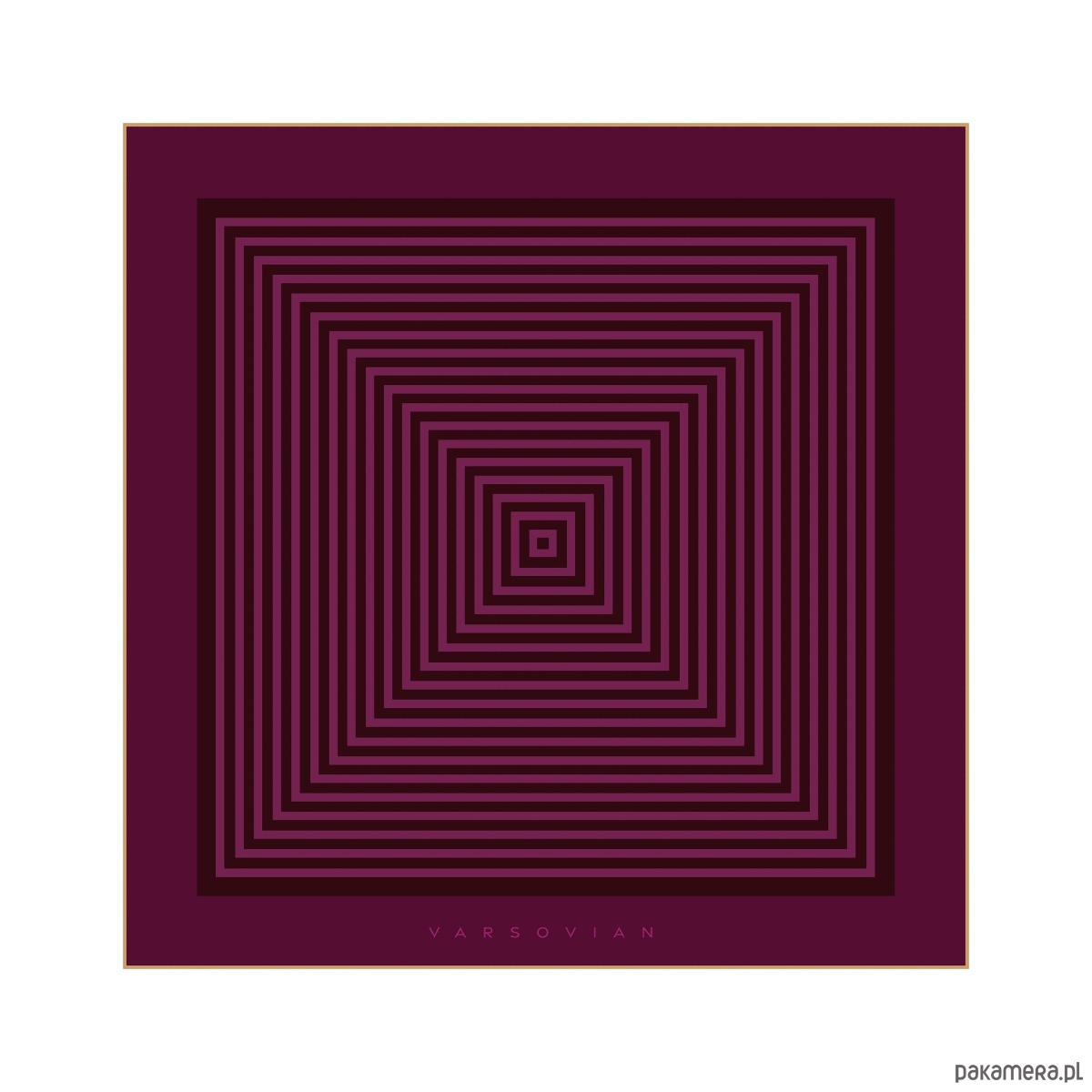 Głęboka, wytrawna burgundowa tonacja spotyka się tu z hipnotycznym, geometrycznym rytmem. Koncentryczne kwadraty tworzą efekt lekko pulsującej przestrzeni — nowoczesnej, minimalistycznej i świadomie wyważonej. To apaszka, która łączy w sobie spokój i energię, klasykę i odważną grafikę.