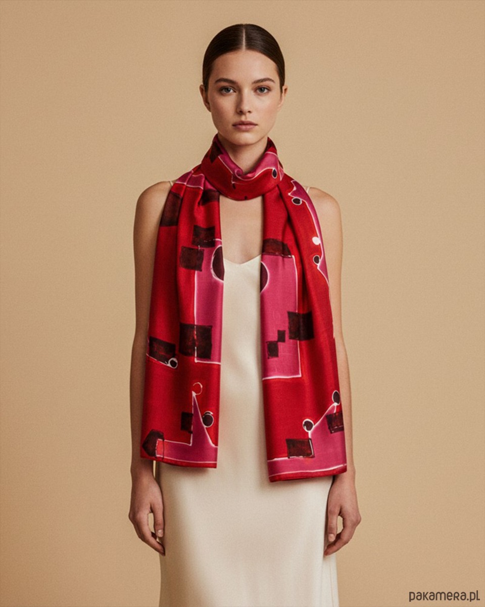Do produkcji wykorzystujemy jedynie 100% jedwab o starannie dobranej gęstości, grubości i teksturze, dzięki czemu materiał pięknie układa się na sylwetce, zachowując jednocześnie trwałość i elegancki połysk. Zaawansowane techniki druku, oparte na tradycji rzemiosła, pozwalają na precyzyjne odwzorowanie kolorów i detali, co sprawia, że każda chusta jest dziełem sztuki — tak samo satysfakcjonującym dla klienta, jak i dla autorki projektu.