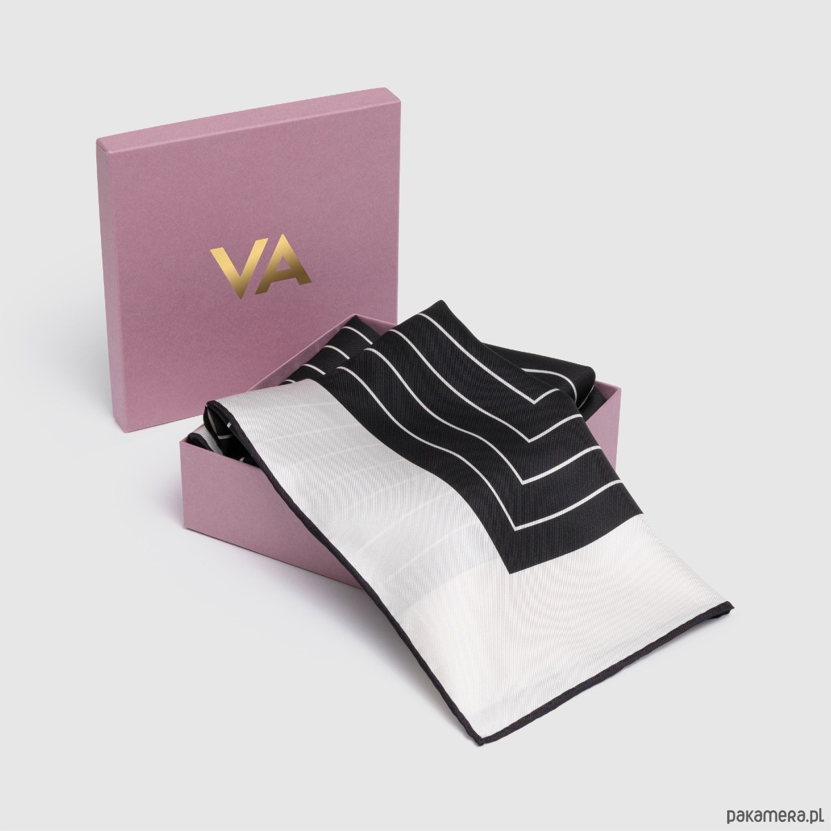 Tytuł In or Up (od inward / upward) podkreśla tę dwuznaczność. Wzór działa jak wizualna medytacja – zaprasza do zatrzymania się, skupienia, zmiany perspektywy. Minimalistyczna forma i precyzyjna geometria sprawiają, że apaszka jest wyrazista, ale nie przytłaczająca.