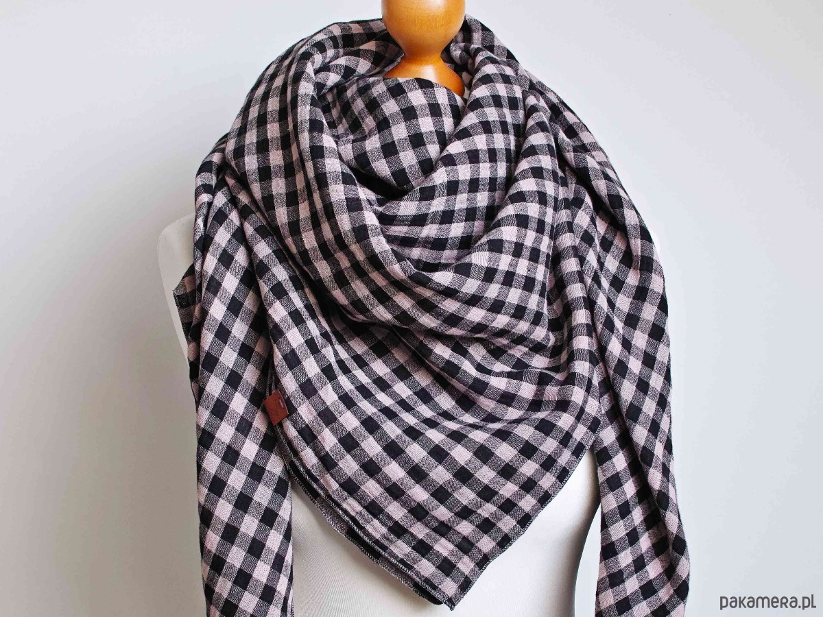 Miękka i bardzo przyjemna w dotyku chusta damska w kolorze czarny/pudrowy róż. Chusta została uszyta z delikatnej tkaniny bawełnianej, który jest bardzo przyjemny dla skóry.