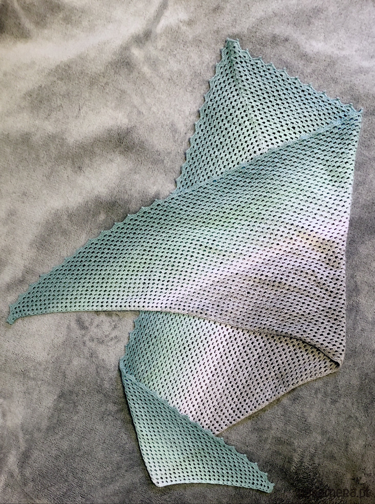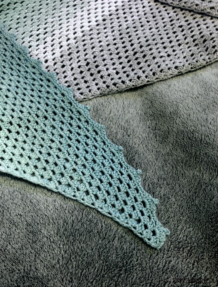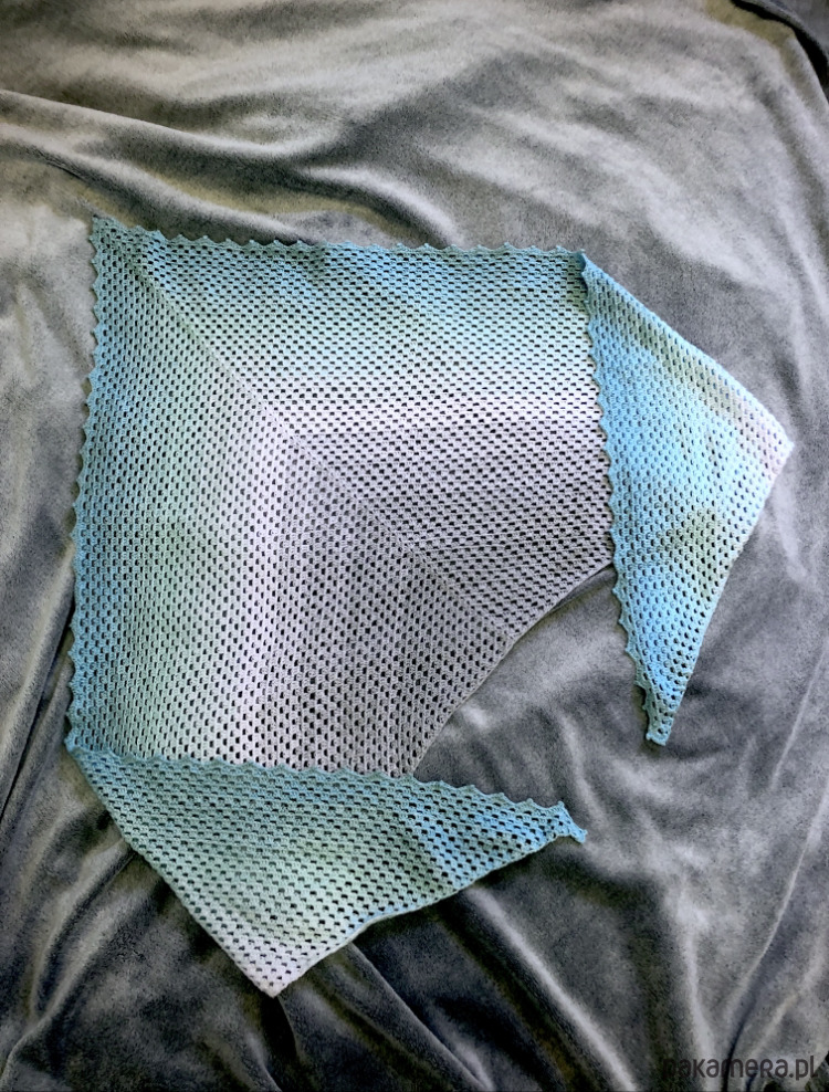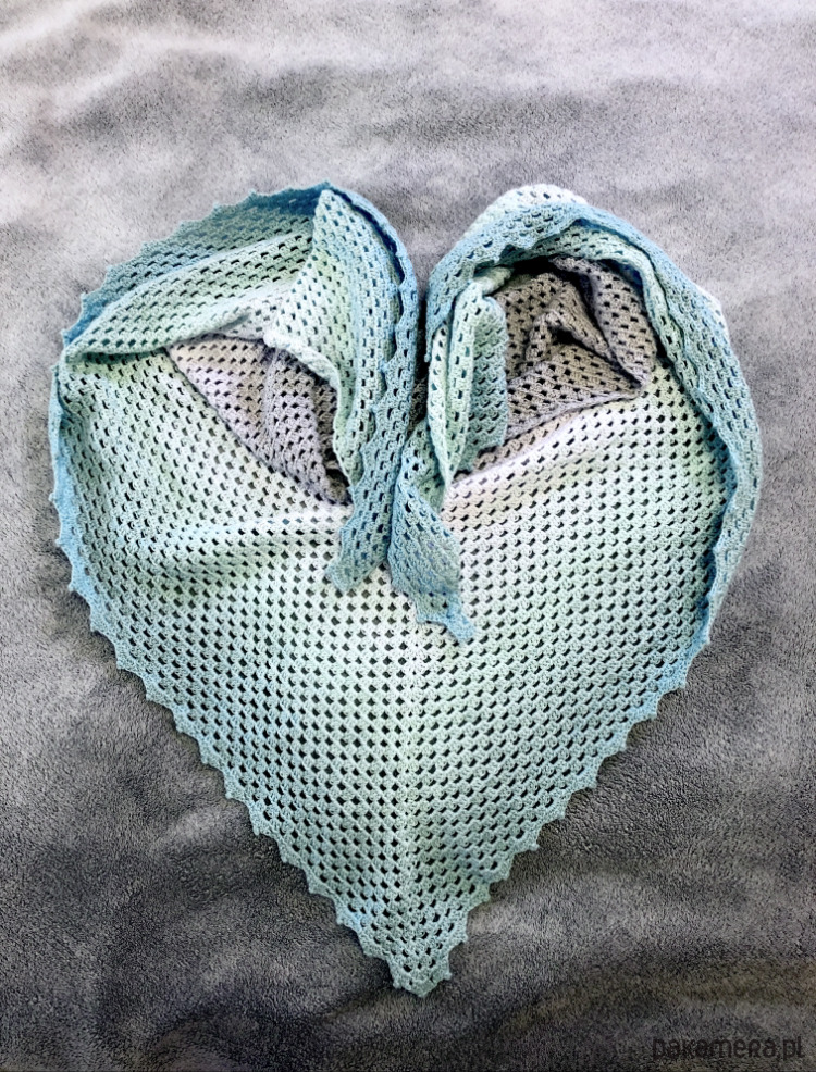 Chusta zrobiona na szydełku z niezwykle miękkiej i lejącej się włoczki. Chusta jest lekka, oddychająca i przewiewna.