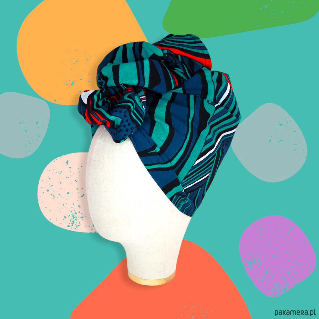Chusta na afrykański Arykański Turban wykonany z materiału 100% bawełny o mocnym splocie, barwionym metodą wax printing. Dzięki najwyższej gatunkowo tkaninie produkt jest niezwykle wytrzymały i sprawdzi się o każdej porze roku. Materiał we wzory afrykańskie!