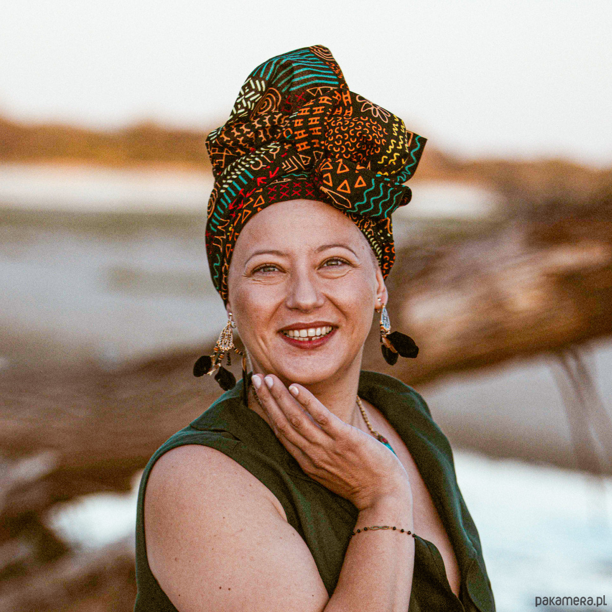 Chusta na afrykański Arykański Turban wykonany z materiału 100% bawełny o mocnym splocie, barwionym metodą wax printing. Dzięki najwyższej gatunkowo tkaninie produkt jest niezwykle wytrzymały i sprawdzi się o każdej porze roku. Materiał we wzory afrykańskie!