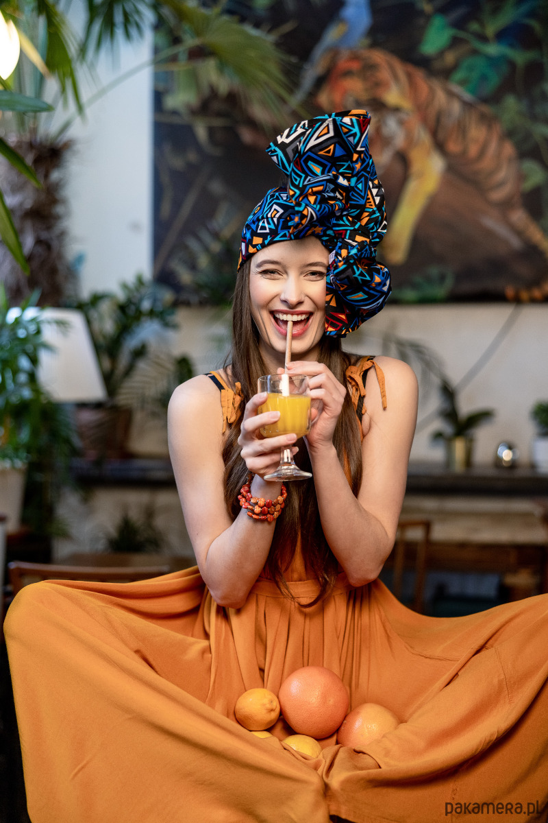 Obszerny materiał daje szerokie możliwości upięć fantazyjnych turbanów na głowie. Sprawdza się także jako oryginalna bluzka, biustonosz czy pareo. Poznaj wiązania turbanów.