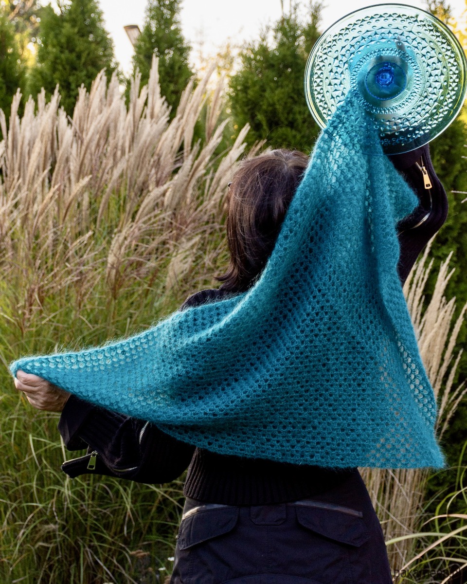 Chusta jak mgiełka, cienka jak pajęczynka – wykonana z najdelikatniejszej włóczki i z dbałością o każdy detal. Lekka i eteryczna, niemal niewyczuwalna na ramionach, a zarazem zaskakująco ciepła i otulająca.
