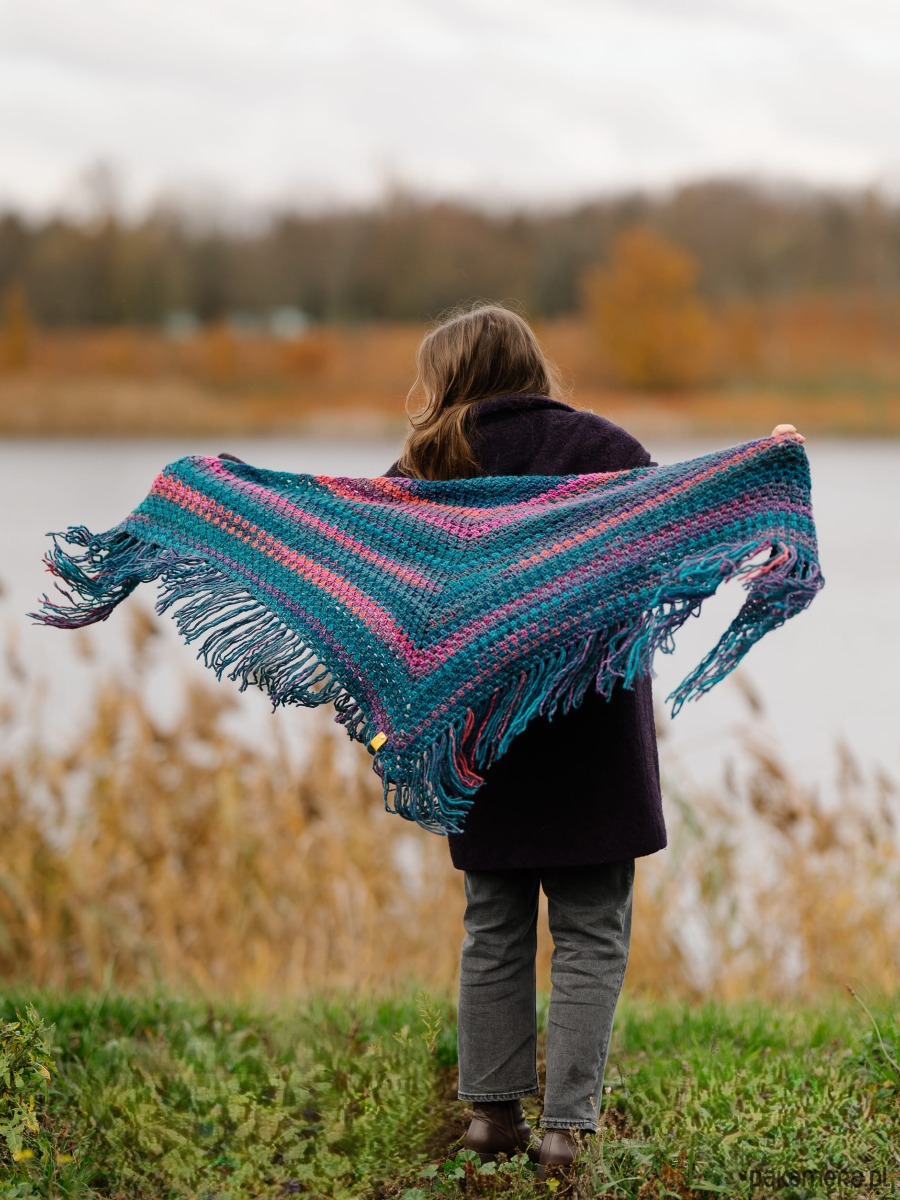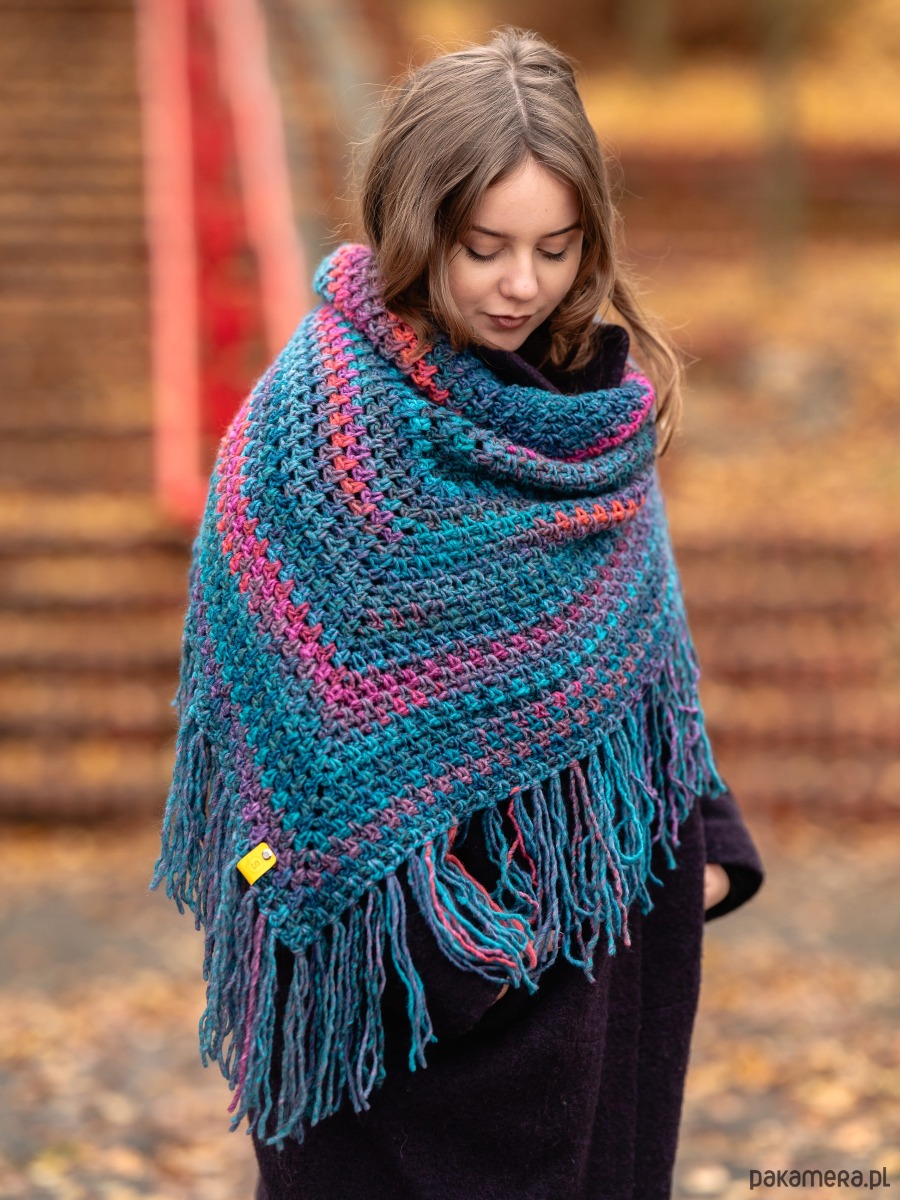 Trójkątny kształt, dekoracyjne frędzle i wyjątkowe połączenia kolorystyczne sprawiają, że każda sztuka jest unikalna.