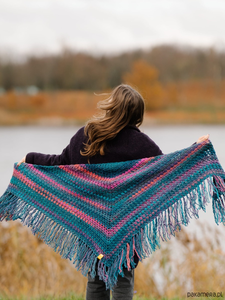 Trójkątny kształt, dekoracyjne frędzle i wyjątkowe połączenia kolorystyczne sprawiają, że każda sztuka jest unikalna.