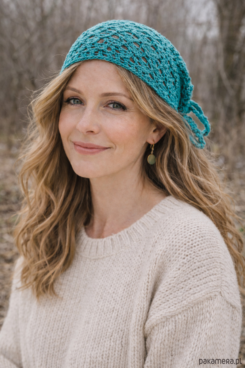 Ażurowy wzór sprawia, że apaszka jest przewiewna i bardzo komfortowa w noszeniu. Pięknie układa się zarówno na szyi, jak i na głowie – można ją nosić jako bandamę, chustę lub delikatny akcent do codziennych i letnich stylizacji.