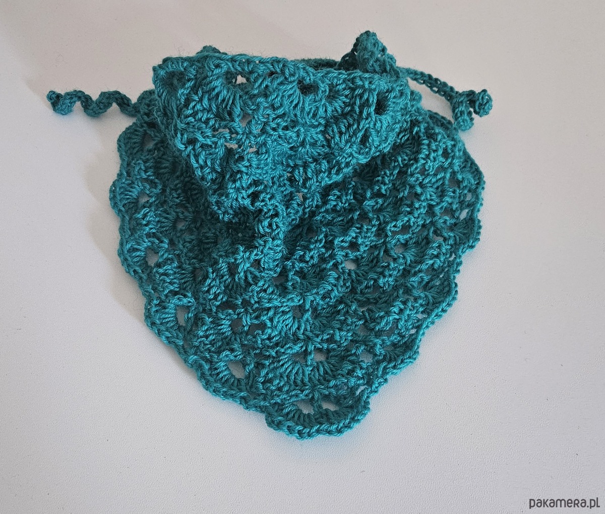 Wełniana apaszka bandama – ręcznie robiona na szydełku