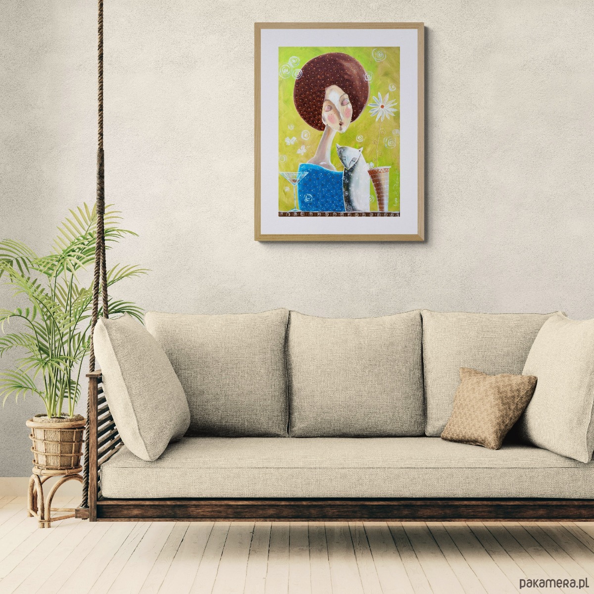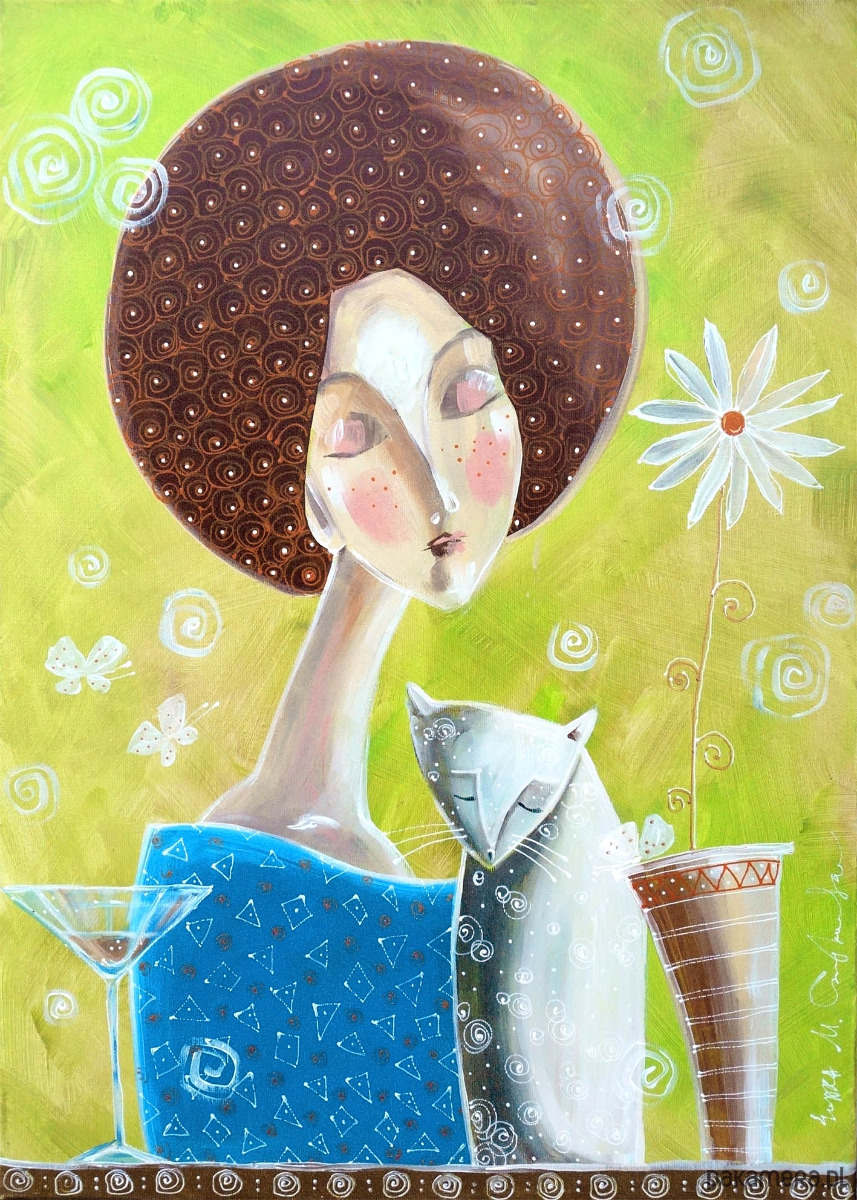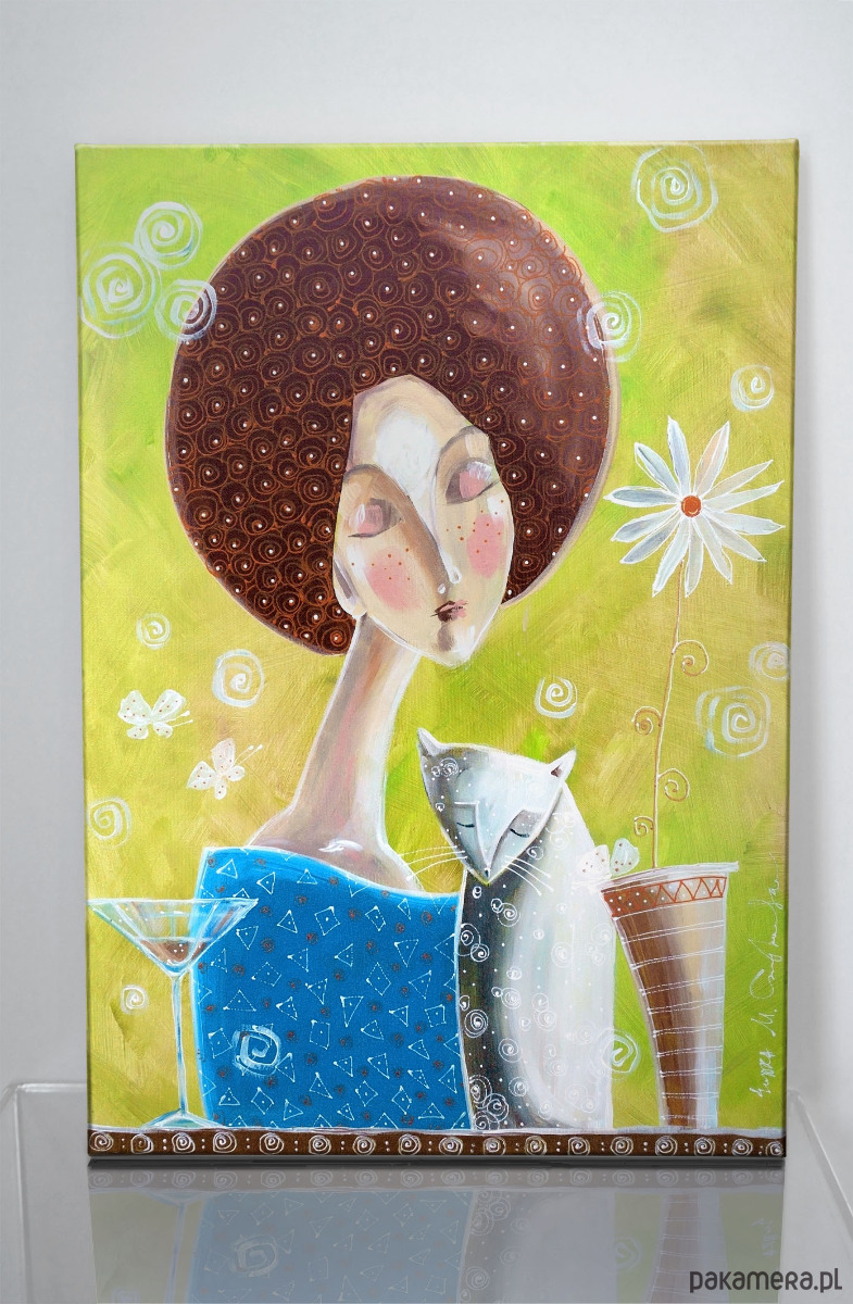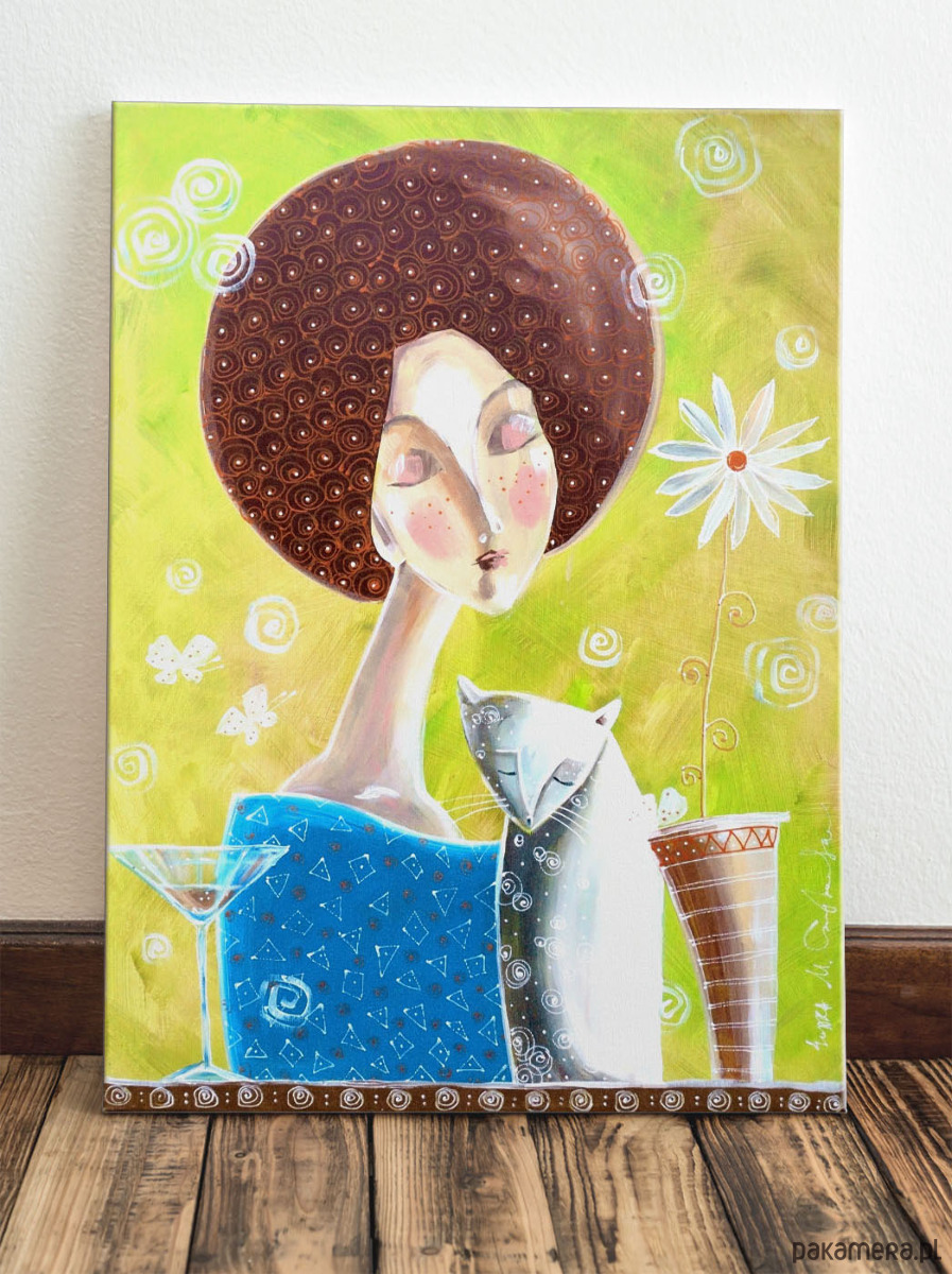 Autorski obraz o tytule "Chwila spokojnej melancholii", malowany ręcznie farbami akrylowymi, a następnie wydrukowany na wysokiej jakości płótnie i naciągnięty na drewniane krosno.
