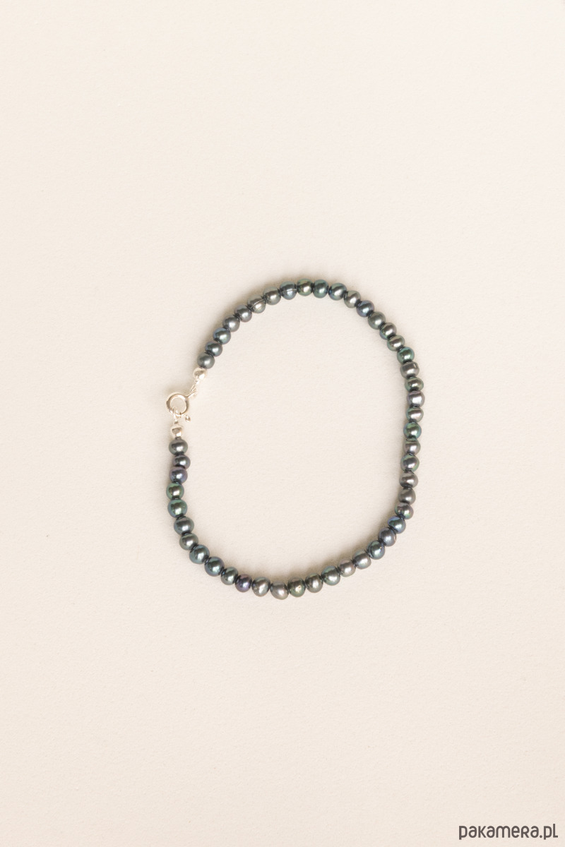 – bransoletka została wykonana z ciemnych pereł o lekko nieregularnym kształcie