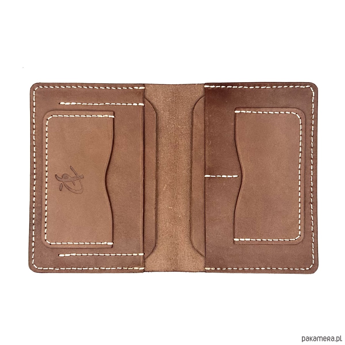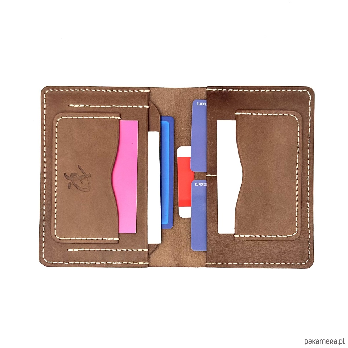 Ciemno brązowy portfel skórzany ręcznie uszyty na karty.