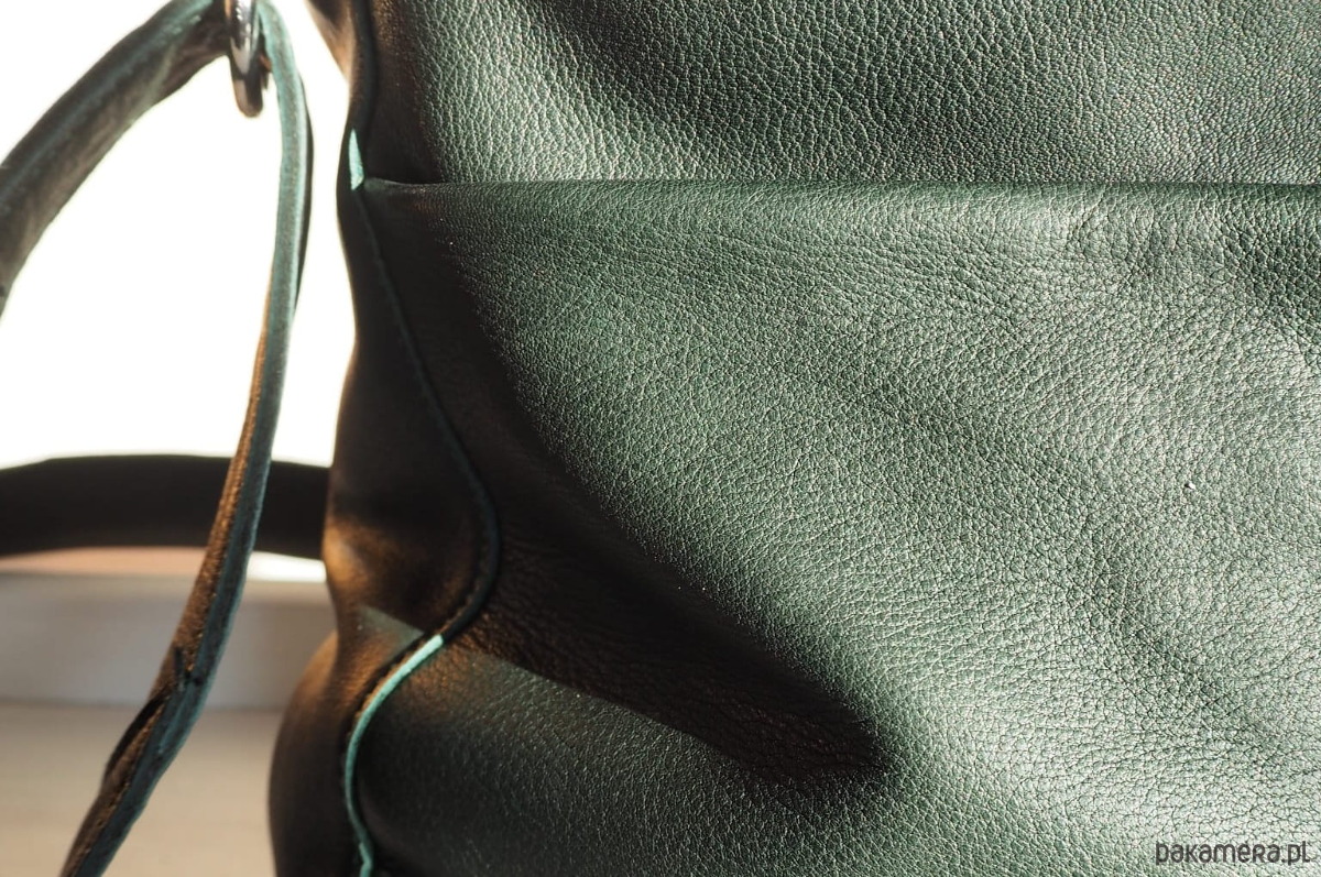 Skóra miękka , grubsza, mięsista. Torebka fajnie trzyma kształt.
