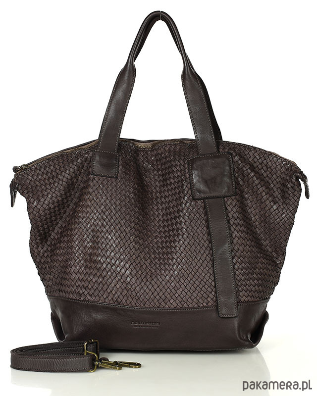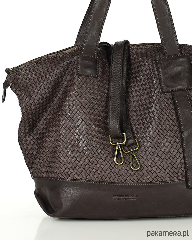 Torebka shopperka Marco Mazzini została wyposażona w mocne, wygodne uchwyty oraz długi pasek na ramię, który umożliwia noszenie torby na skos (crossbody). W środku torby znajdują się dwie kieszenie - jedna zamykana na zamek, druga otwarta oraz dodatkowa zewnętrzna kieszeń z tyłu.Torebka została uszyta we Włoszech z najwyższej jakości, miękkiej skóry naturalnej, ręcznie plecionej z dbałością o każdy detal. Proces plecenia i ręcznego wykańczania skóry sprawia, że każda torba jest unikatowa.
