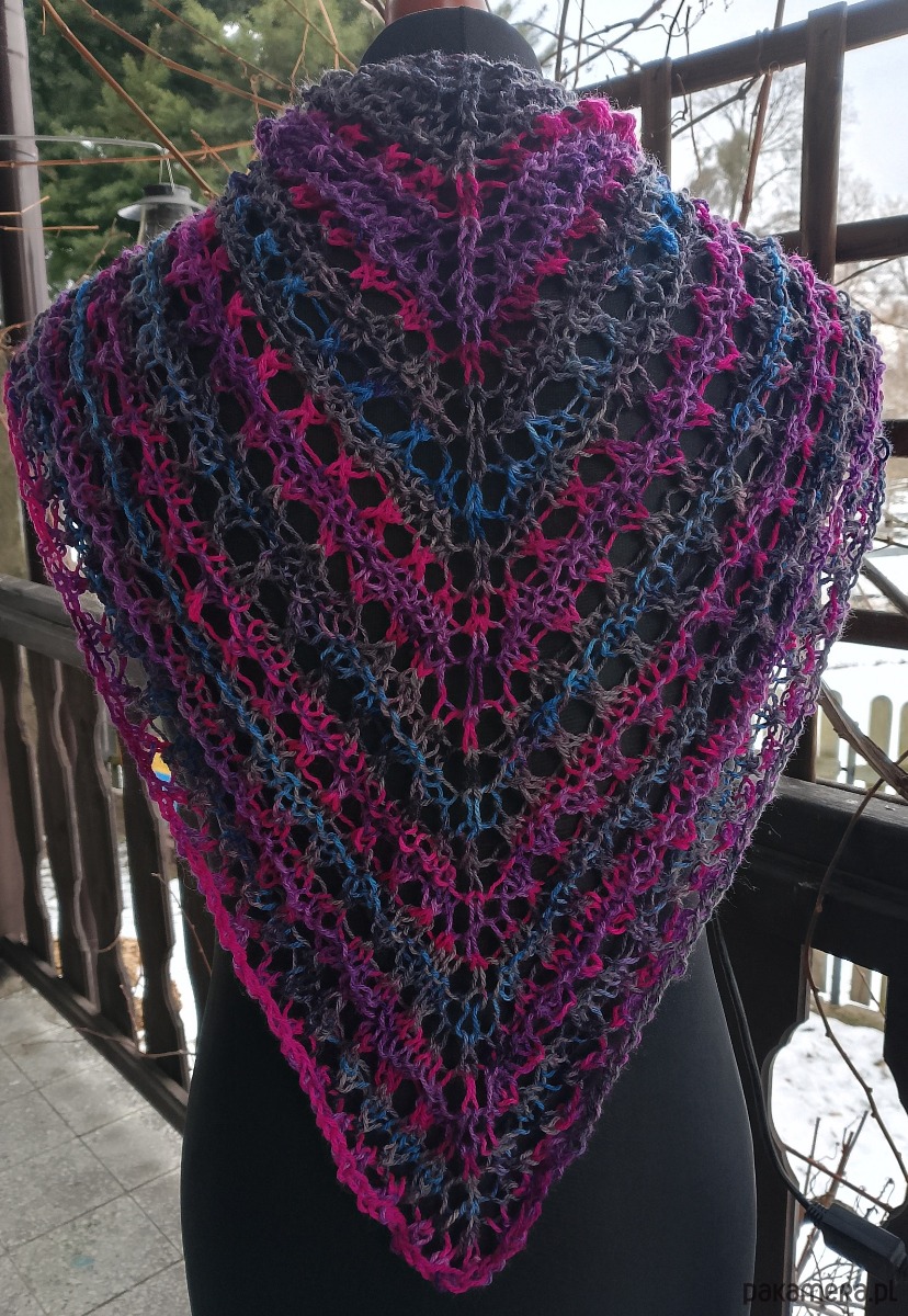 Cieniowana chusta ażurowa, na drutach