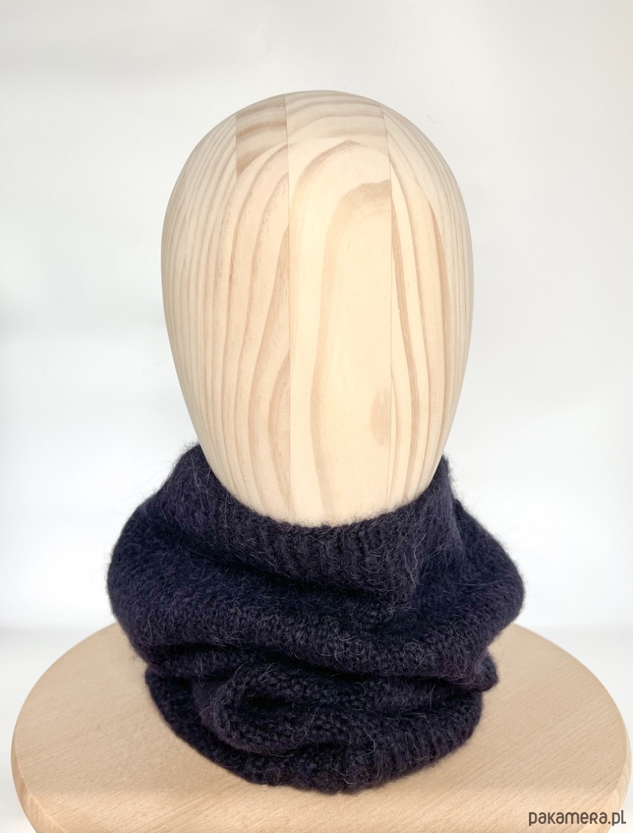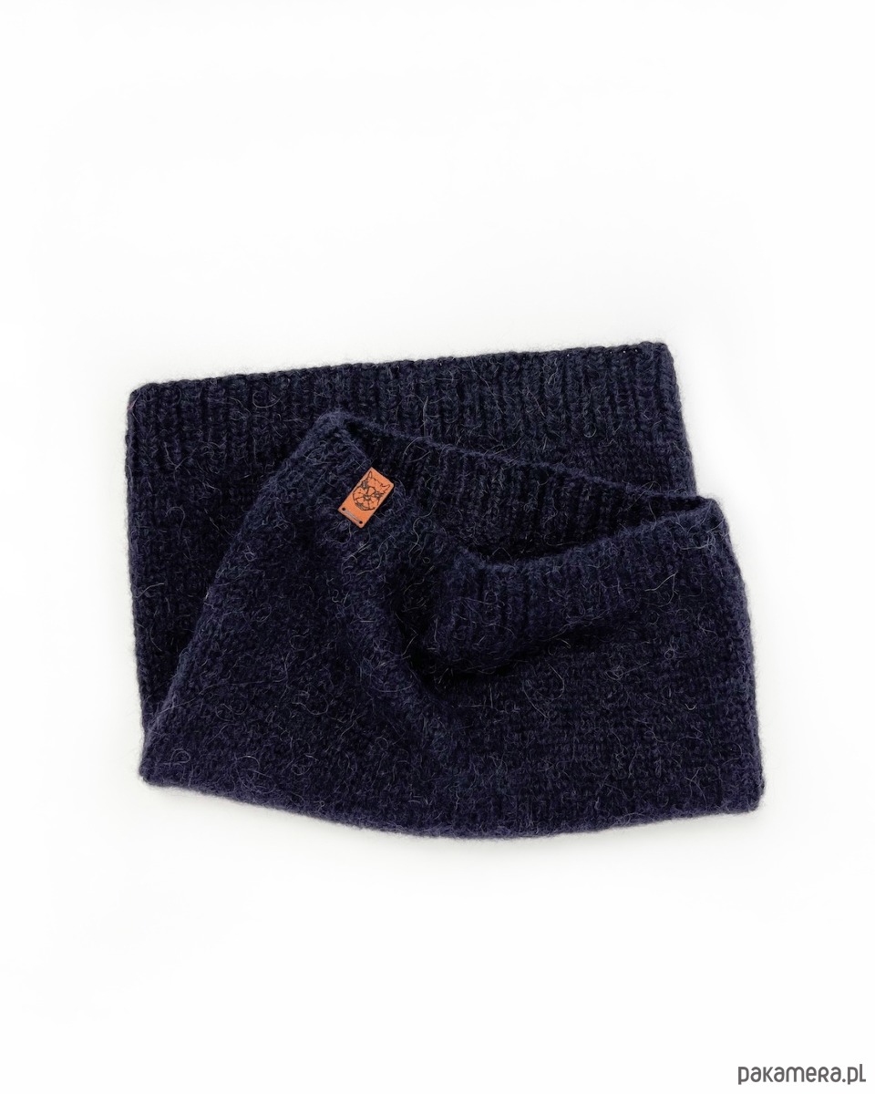 Cienki granatowy komin tuba z wełny alpaki