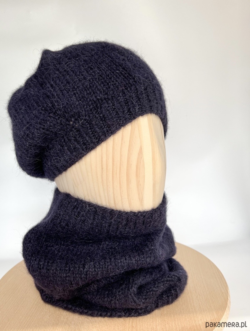 Granatowy komin z alpaki to gustowny dodatek z ponadczasowej kolekcji czapek beretowych i kominów Parisian. Stworzy idealny zestaw z granatową czapką beretową z kolekcji Parisian. Wykonałam go ręcznie na drutach.