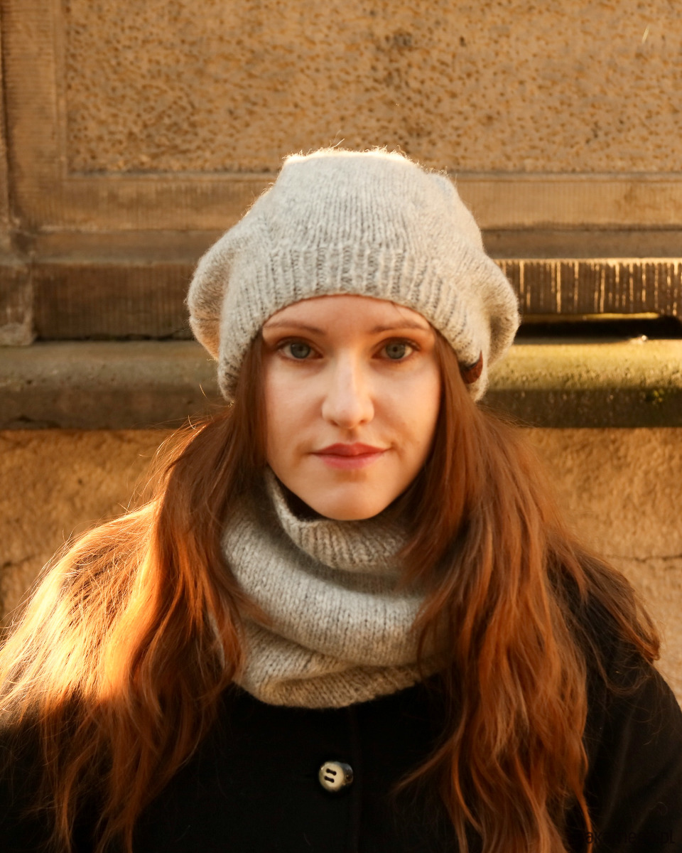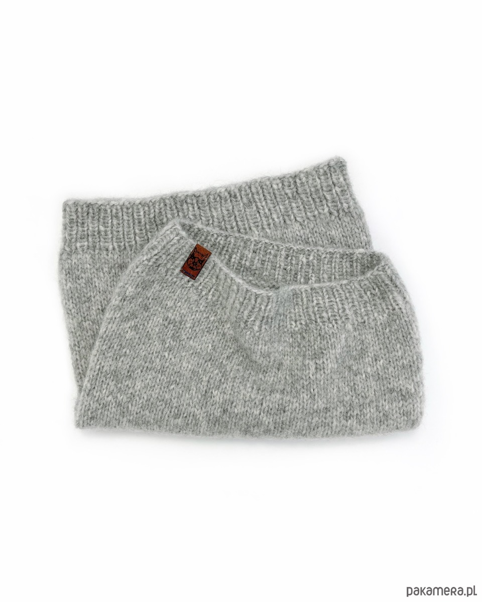 Jasnoszary komin z alpaki to gustowny dodatek z ponadczasowej kolekcji czapek beretowych i kominów . Stworzy idealny zestaw z szarą czapką beretową. Wykonałam go ręcznie na drutach.
