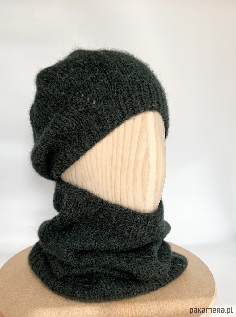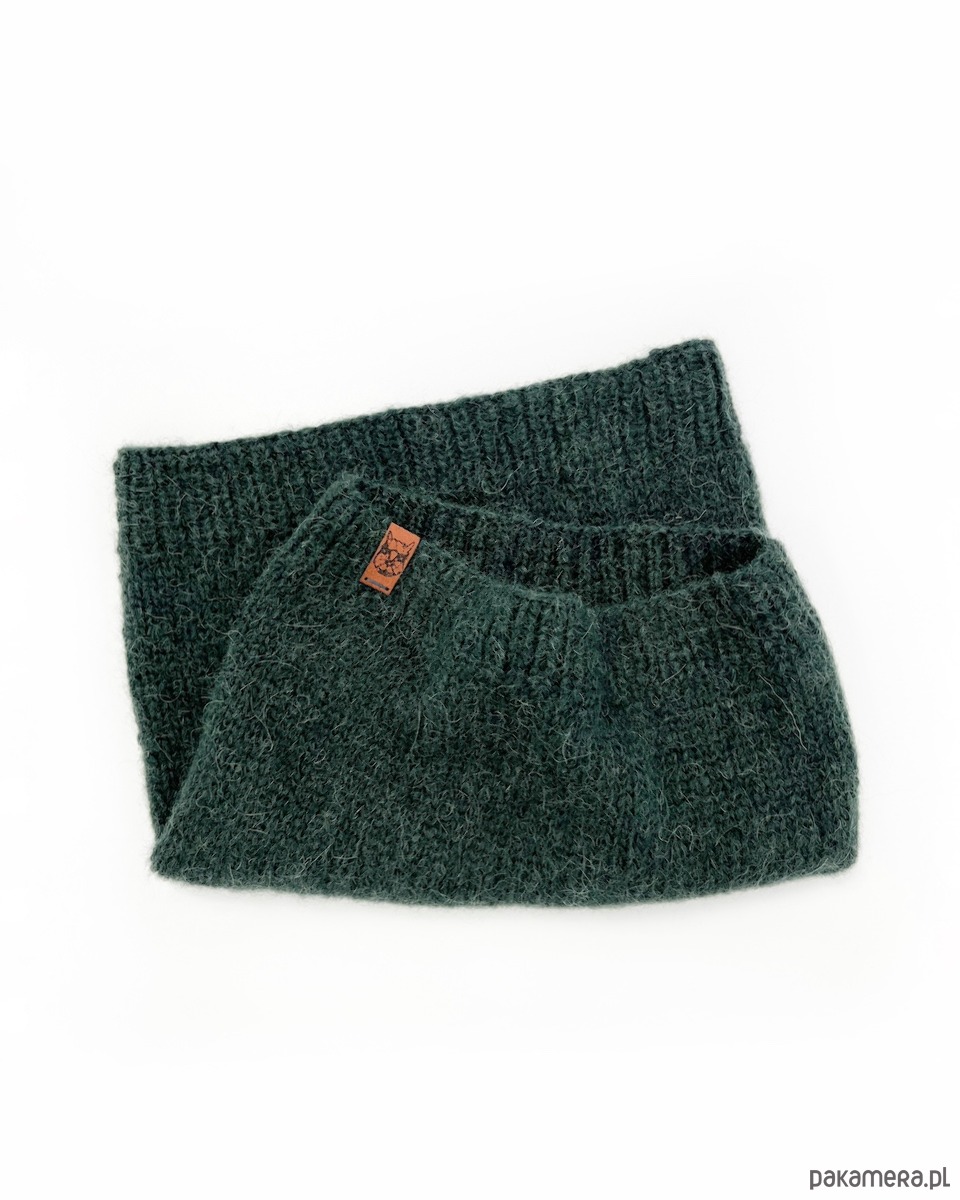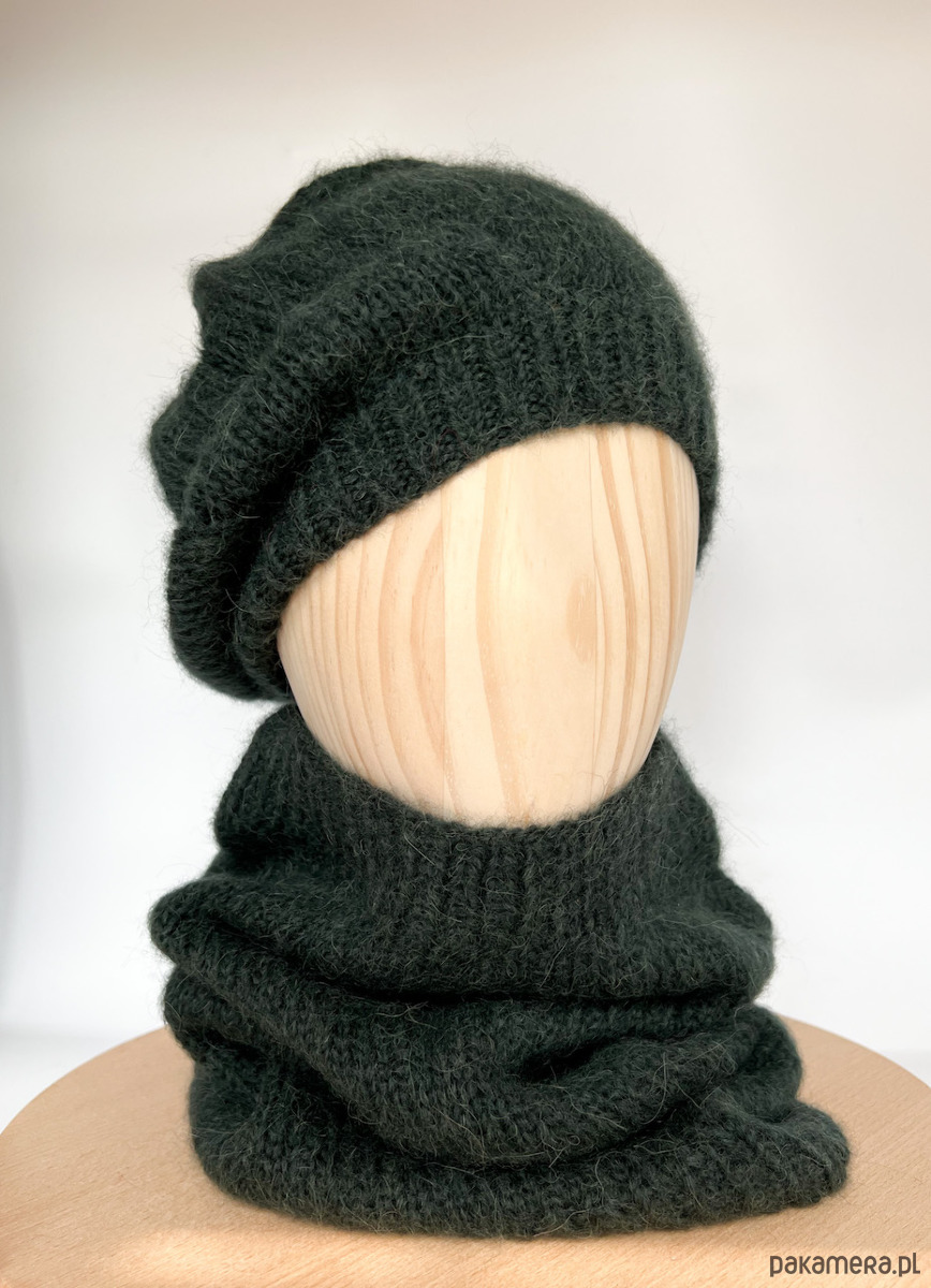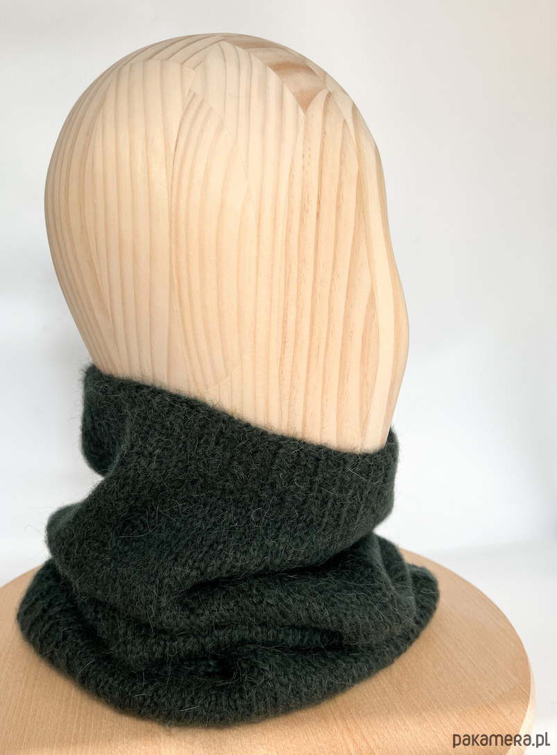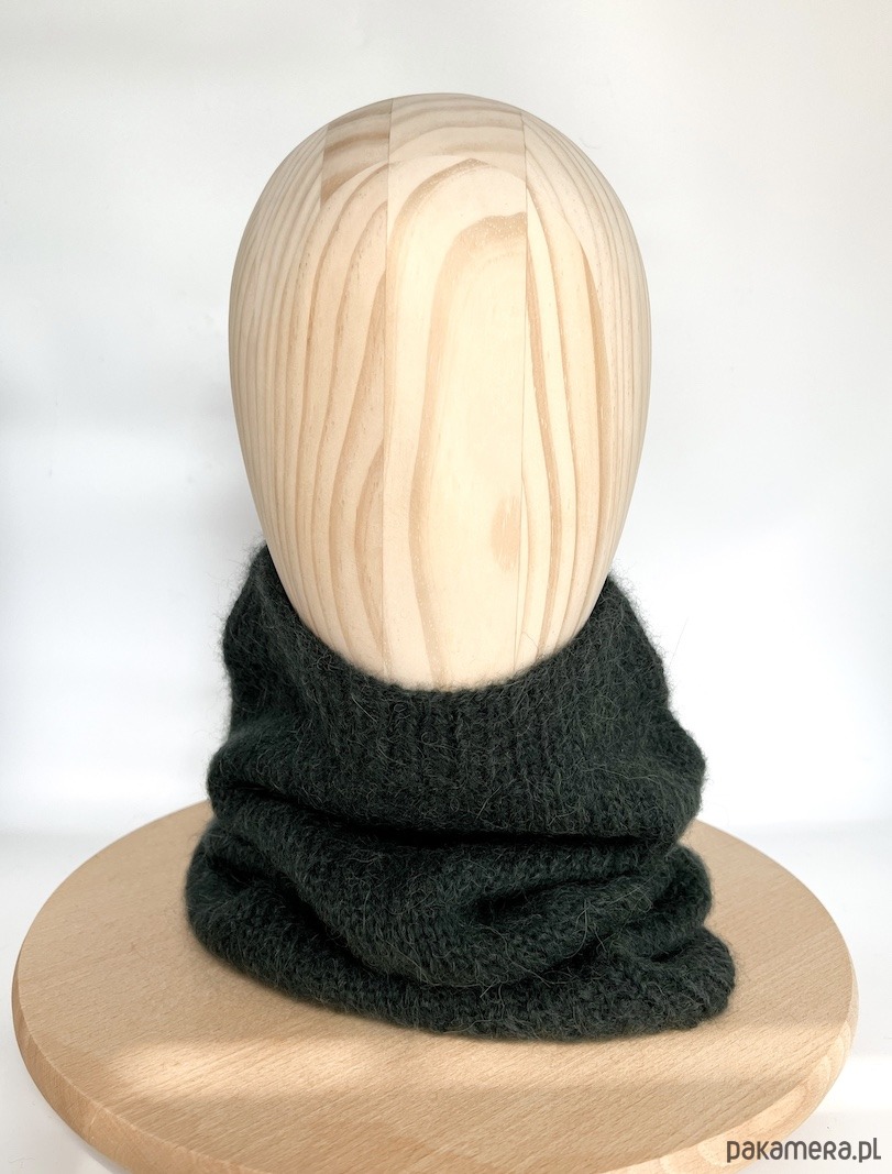 Ciemnozielony komin z alpaki to gustowny dodatek z ponadczasowej kolekcji czapek beretowych i kominów Parisian Chic. Stworzy idealny zestaw z zieloną czapką beretową. Wykonałam go ręcznie na drutach.