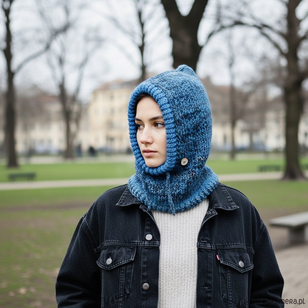 Balaclava świetnie sprawdzi się w chłodne dni – zarówno jako modny dodatek do płaszcza czy kurtki, jak i praktyczna osłona głowy i szyi podczas spacerów, jazdy na rowerze lub górskich wędrówek. Przy większym chłodzie można nałożyć ją głębiej na głowę i ściągnąć sznurki, w cieplejszą pogodę kaptur zdjęty z głowy wygląda ciekawie i efektownie.