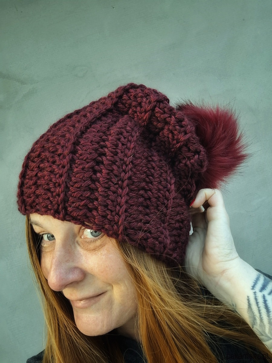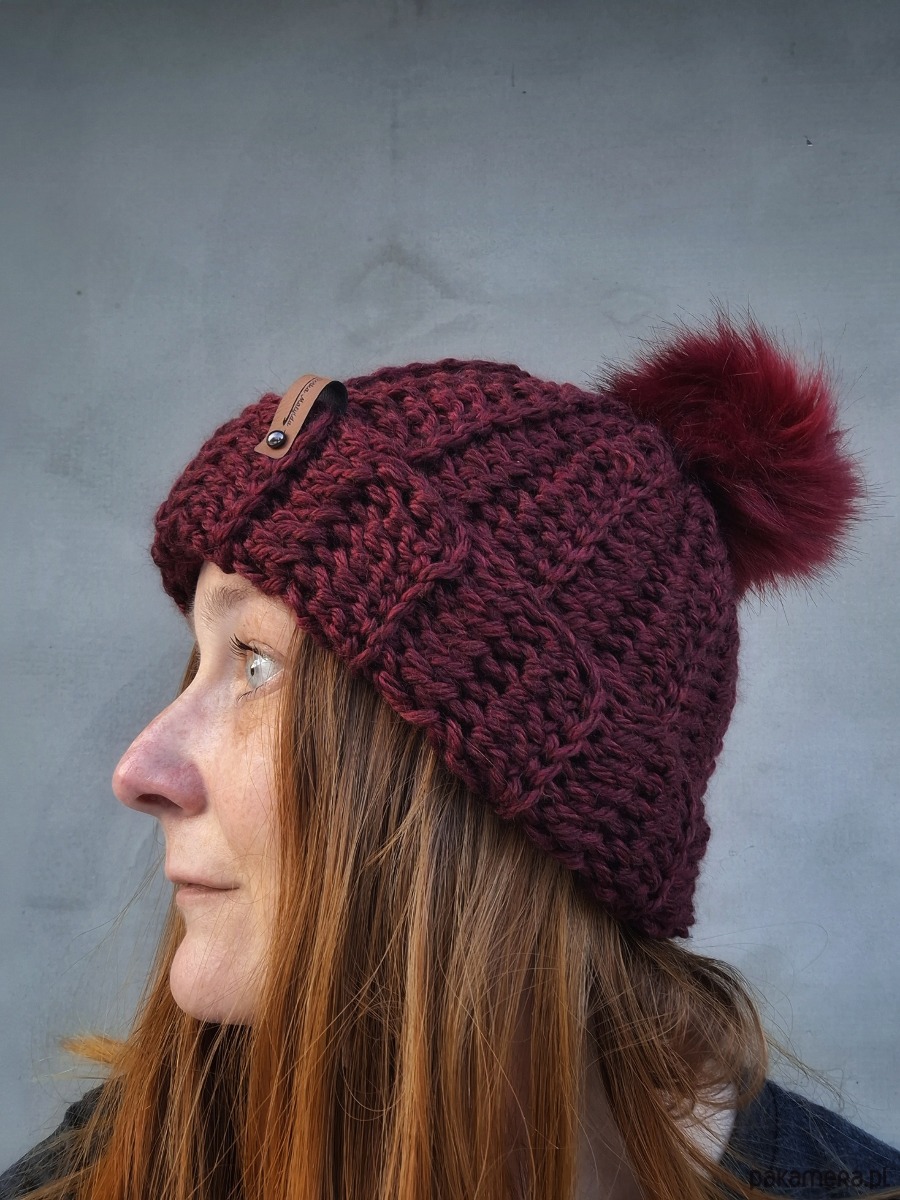Ta czapka to ręcznie wykonany, gruby beanie na szydełku, który zachwyca prostotą i wyrazistym kolorem. Wykonana z miękkiej, mięsistej włóczki w intensywnym odcieniu bordowego doskonale sprawdzi się w chłodniejsze dni, zapewniając ciepło i komfort.