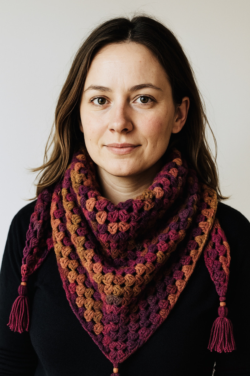 Ciepła kolorowa chusta Granny z chwostami ręcznie robiona