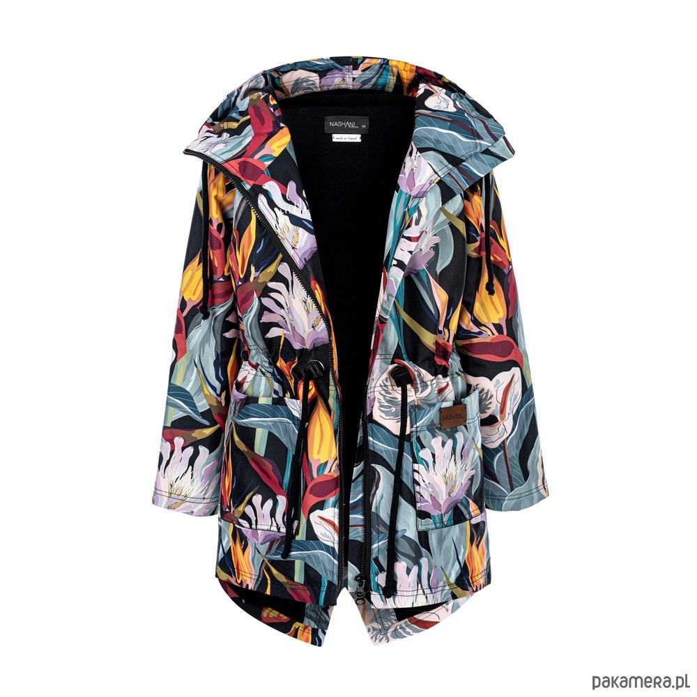 Przepiękna, jesienna parka z kapturem i dużymi kieszeniami.W pasie wszyty tunel który można ściągnąć dla lepszego ocieplenia. Płaszcz ocieplony, zastosowana podszewka to dzianina dresowa drapana w stu procentach bawełniana, oddychająca. Parka idealna na jesień jak i na zimę. Przepiękny print przykuwający uwagę.