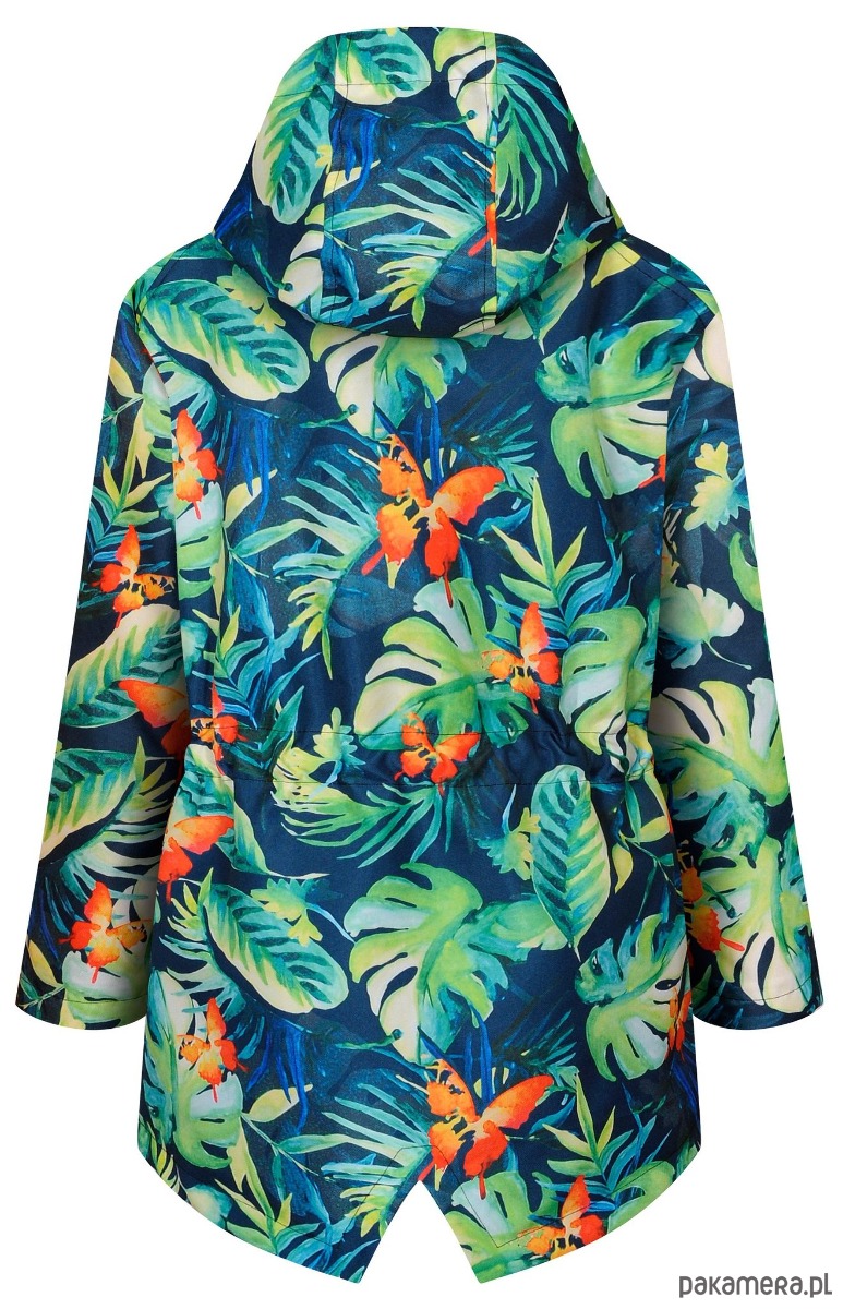 Przepiękna, jesienna parka z kapturem i dużymi kieszeniami.W pasie wszyty tunel który można ściągnąć dla lepszego ocieplenia. Płaszcz ocieplony, zastosowana podszewka to dzianina dresowa drapana w stu procentach bawełniana, oddychająca. Parka idealna na jesień jak i na zimę. Przepiękny print przykuwający uwagę.