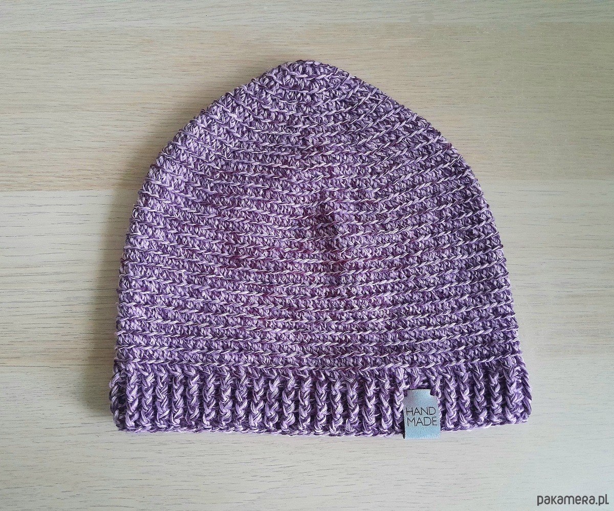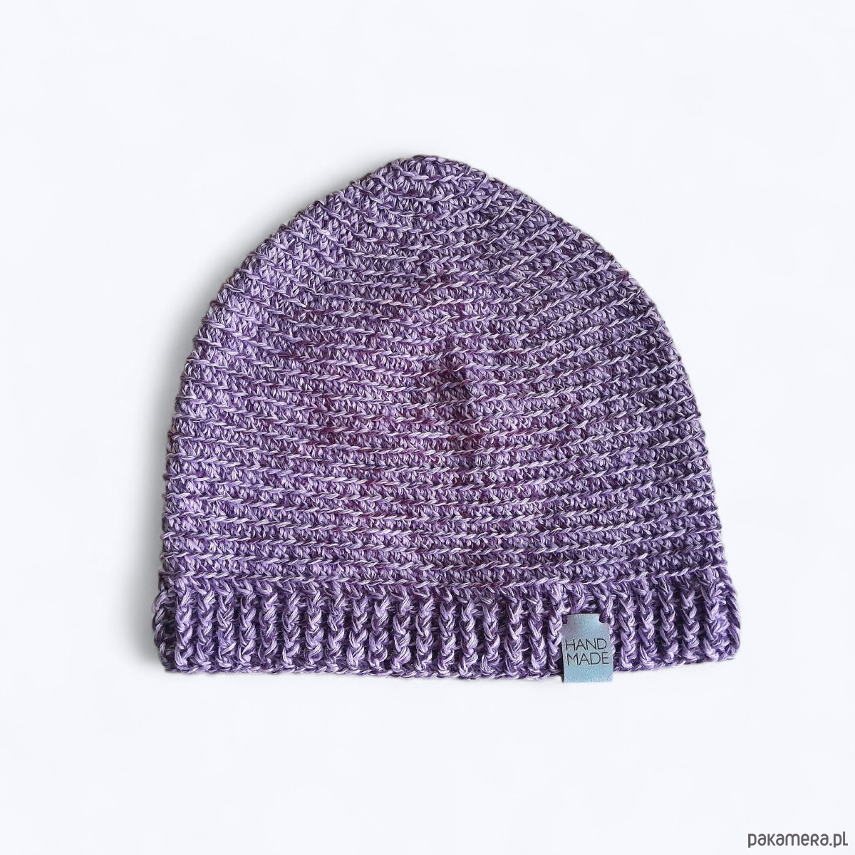 Ciepła, szydełkowa czapka ze ściągaczem, wykonana na szydełku z wysokiej jakości włóczki 50% akryl 50 % wełna merino.