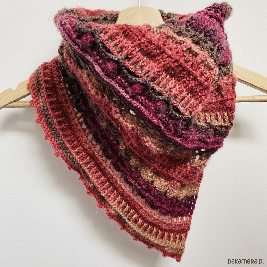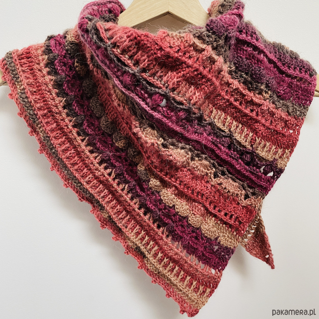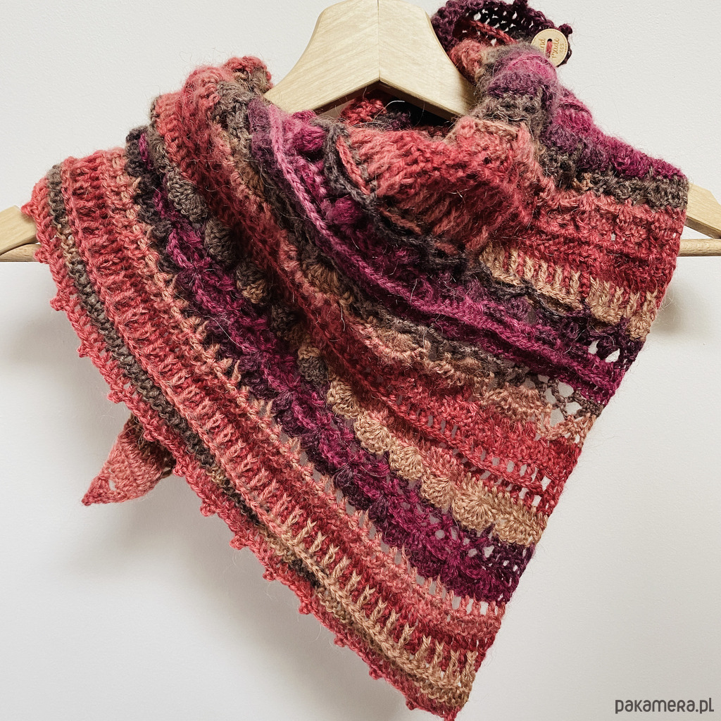 Chustę / apaszkę wykonałam na szydełku z myślą o komforcie i stylu, wykorzystując włóczkę Papatya Angora, która zachwyca swoją miękkością i delikatnością. Połączenie 20% wełny merynosów znanej z doskonałych właściwości termoizolacyjnych, z 80% akrylu sprawia, że jest to idealny wybór na chłodniejsze dni. Ta chusta to nie tylko praktyczny dodatek, ale także stylowy element garderoby.